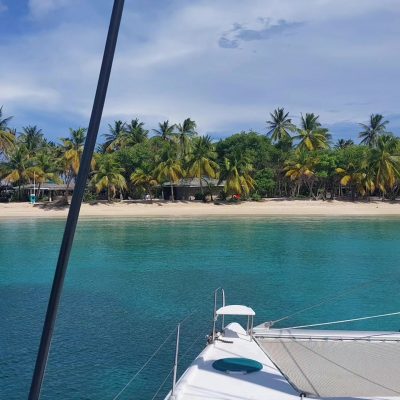 Marius: Gewöhnlich, aber natürlich auch abhängig von den Gästen, steuern wir jeden Tag eine andere Insel an. Wir starten mit dem Frühstück und dann sind wir, je nach Entfernung, 1, 2 bis 4 Stunden segelnd unterwegs. Wenn wir ankommen, unternehmen die Gäste was, sei es Baden, Schnorcheln, am Strand liegen, Wandern. Hat die Fahrt länger gedauert, gibt es erst einmal Mittagessen und dann, was immer unsere Gäste machen wollen. Wir geben gerne Tipps und Ideen. Wir haben auch unser Netzwerk von Locals, die Führungen machen oder auch ein Bonfire am Abend am Strand mit local Sundownern. Auch wenn unsere Gäste tauchen oder kitesurfen möchten, können wir das arrangieren. Zum Übernachten ankern wir in der Regel in einer der vielen schönen Buchten.