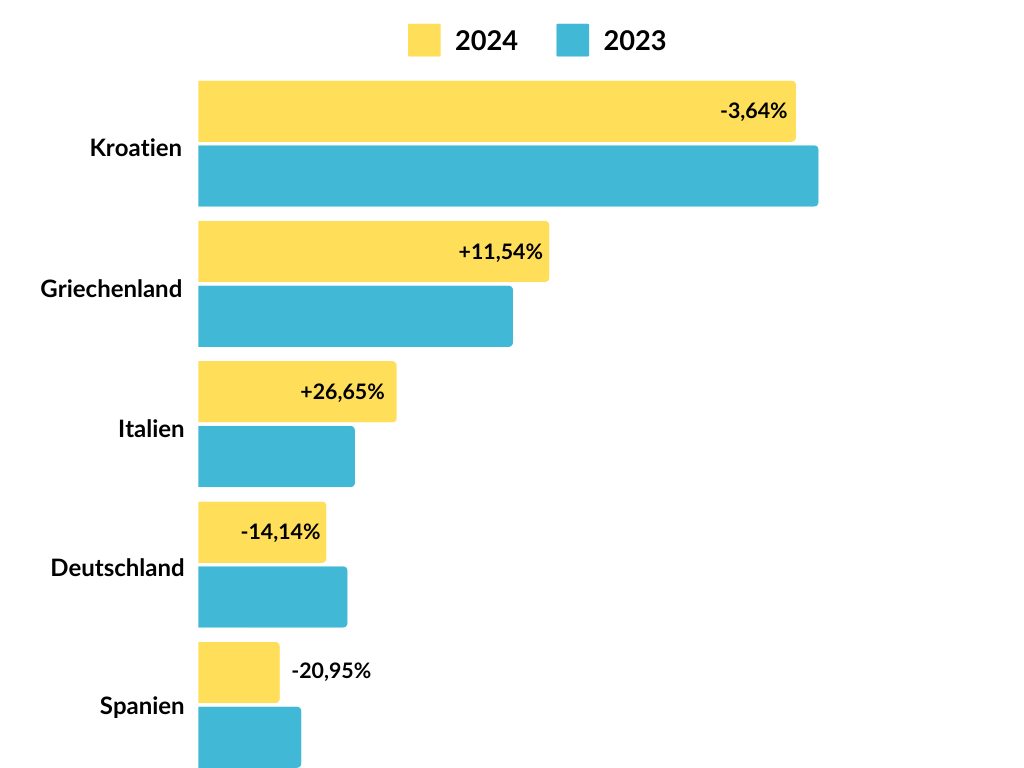 Die eigentliche Nummer 1 ist die Türkei, welche aufgrund der geringen Buchungszahlen nicht zu den Top 5 Ländern zählt: