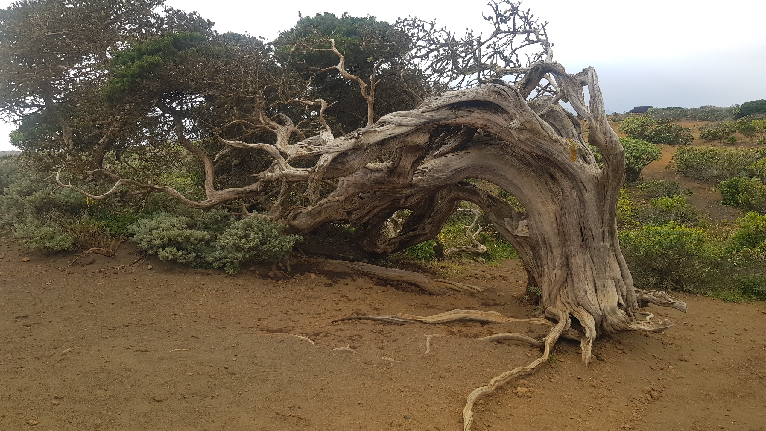 Weiter ging es ins Dorf Frontera, wo man in einem kleinen, authentischen Restaurant, Restaurante La Bodeguita de Fa, gegenüber der Kirche einkehrte – einfach, bodenständig und von Einheimischen besucht. Nach kurzer Verdauung fuhr die Crew in die abgelegene Region El Sabinar, bekannt für ihre windverformten Wacholderbäume – ein ikonisches Naturmotiv El Hierros. Die Anfahrt über längere Schotterpisten war abenteuerlich, aber lohnend.
