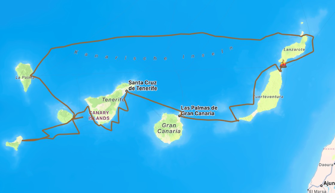 Route: Lanzarote – La Graciosa – La Palma – La Gomera – El Hierro – La Gomera – Teneriffa – Fuerteventura – Lanzarote