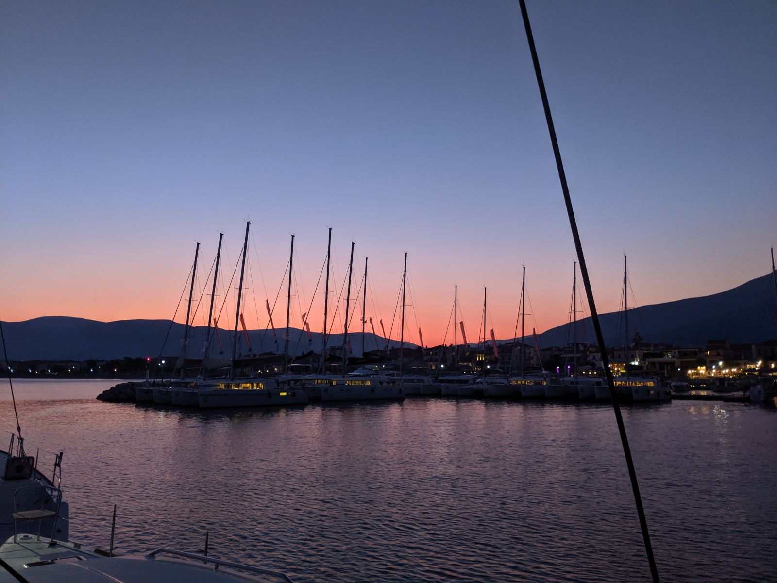 Die Unterbringung im neuen Hafen von Spetses war leider nicht besonders gut. Wir lagen an einem Betonsteg mit so viel Schwell, dass man fast überhaupt nicht von Bord kam. Zugute halten kann man Istion, dass zwei Mann als Nachtwache abgestellt waren, die uns dann auch um 4 Uhr geweckt haben, da selbst trotz 60 Meter Ankerkette das Schiff zurückgerutscht war.