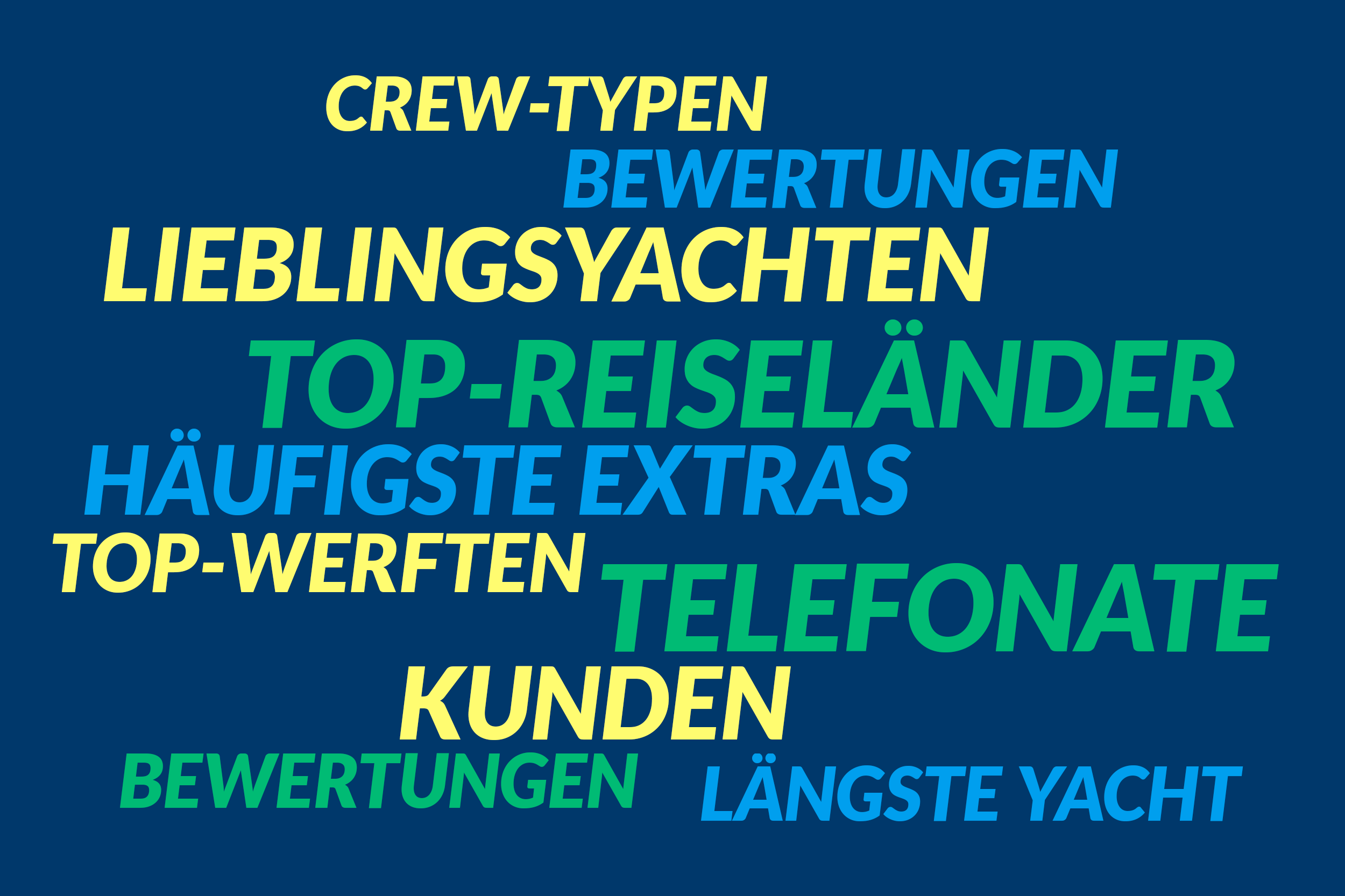 In unserer Infografik finden Sie die Topreiseländer unserer Kunden, die beliebtesten Yachten, wie lange die längste Charterreise dauerte und vieles mehr. Das Jahr 2019 in Zahlen und Bildern, bunt und auf einen Blick! (Bitte auf das Bild klicken für bessere Lesbarkeit)