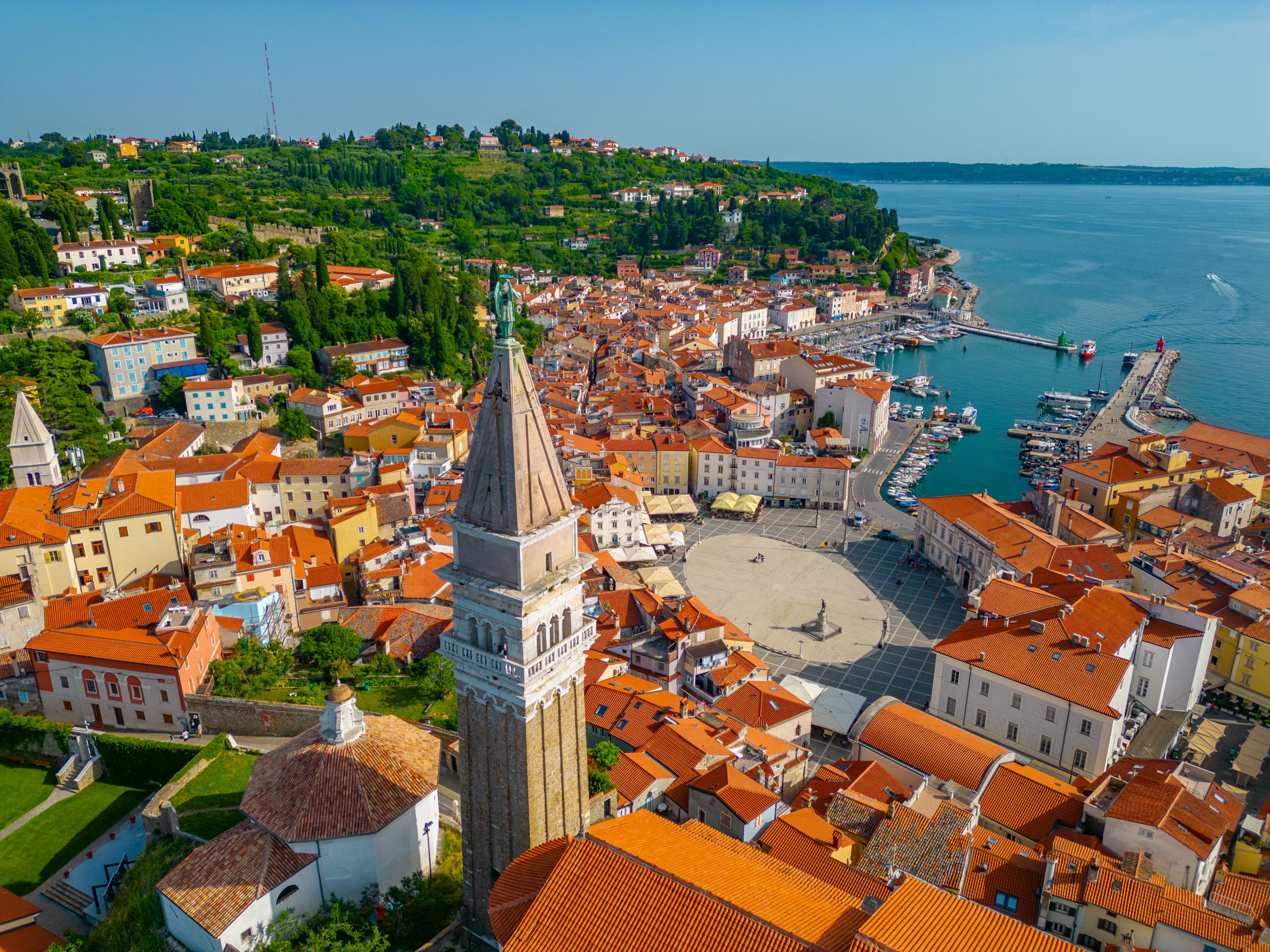 Der kleine Ort Piran liegt im slowenischen Teil Istriens, schon in Sichtweite der kroatischen Grenze. Der Hafen liegt direkt an der Altstadt, von hier sind es nur ein paar Schritte zum Tartiniplatz mit seinen pastellfarbenen Häusern. Im Zentrum steht eine Statue des Komponisten Guiseppe Tartini, dessen Geburtshaus eines der ältesten Gebäude am Platz ist. Besonders ins Auge fällt auch das rote „Venezierhaus“, das auf die historische Verbindung Pirans mit dem nahen Venedig hinweist. Von hier ziehen sich die engen Gassen der Altstadt über eine kleine Halbinsel, die zur Landseite hin durch eine noch gut erhaltene Stadtmauer mit Wehrtürmen abgegrenzt wird. Zum Meer hin führt eine schöne Promenade um den Ort, gesäumt von zahlreichen Restaurants und Cafés zum Entspannen und Genießen. Nach der Stärkung kann dann der Kirchturm der Domkirche bestiegen werden, von hier gibt es eine herrliche Aussicht über Piran und das Meer.