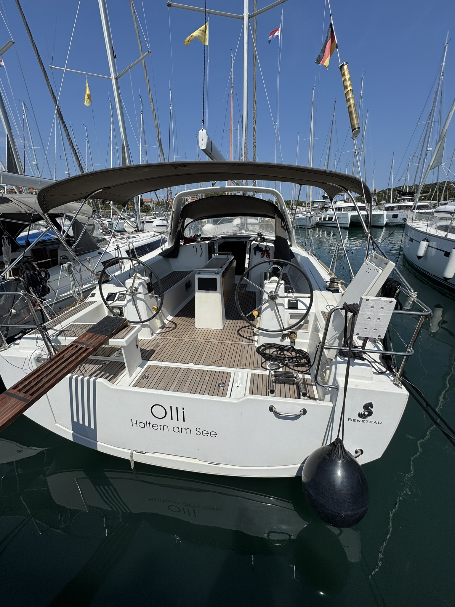 Bei der Bootsübernahme in der Marina Veruda waren wir positiv überrascht: Unser Schiff, eine Oceanis 38 Baujahr 2014, war in einem sehr gepflegten Zustand. Die Segel wurden bereits 2020 erneuert, wirkten aber dennoch neuwertig. Das ganze Schiff machte einen verlässlichen Eindruck – ein guter Start für unseren Familienurlaub auf dem Wasser. Auch die Übergabe verlief unkompliziert und schnell, obwohl wir etwas später dran waren. Das Boot war sauber, ordentlich ausgestattet und machte sofort Lust, in See zu stechen.