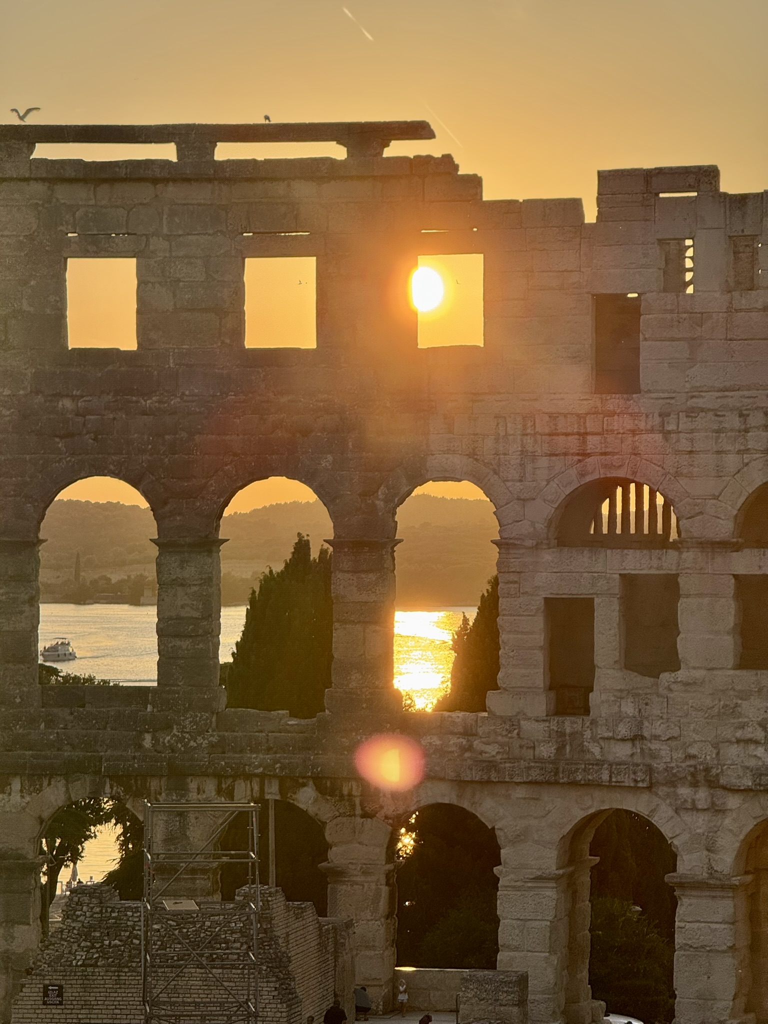 Unser Start wurde direkt durch eine Magenverstimmung ausgebremst. Sicherheit geht vor und somit entschieden wir uns, lieber noch einen Tag in Pula zu bleiben.  So nutzten wir die Zeit, die Stadt zu erkunden – allen voran die beeindruckende Arena, die auch bei sommerlicher Hitze ihren Charme hat. Ansonsten ließen wir es ruhig angehen und verbrachten einen entspannten Tag an Land.