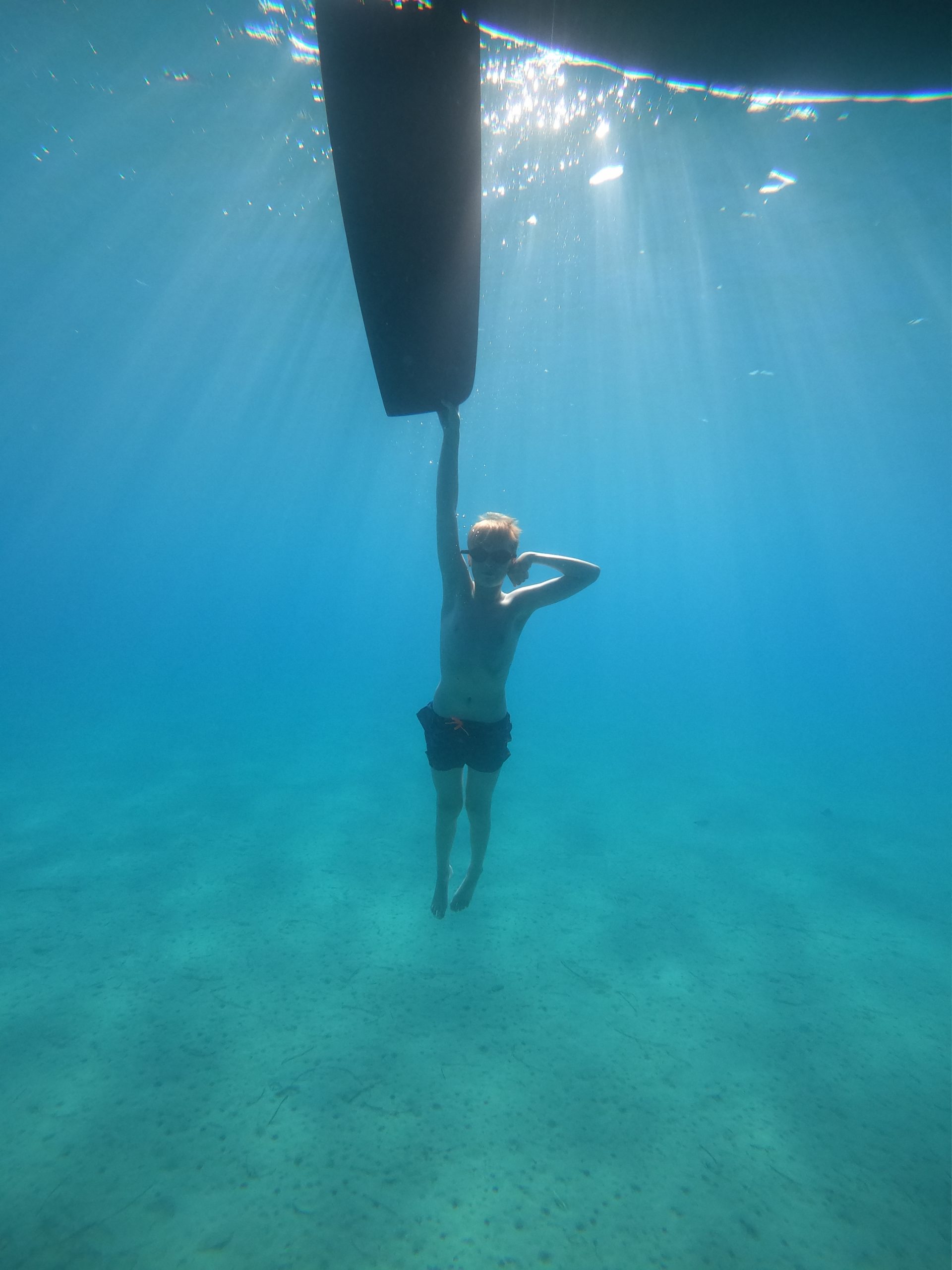 Unser Ziel war die Insel Susak, eine der wenigen kroatischen Inseln mit feinem Sandstrand. In der Bucht ankerten wir auf drei bis vier Metern über Sandgrund und ließen 30 Meter Kette fallen. Der Anker saß perfekt, und das Wasser schimmerte türkisgrün – fast wie in der Karibik. Durch den hellen Sand war die Sicht unter Wasser hervorragend, und beim Schnorcheln konnte man die Ankerkette bis zum Grund verfolgen.