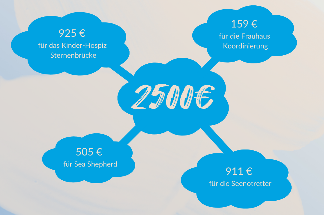 Dank Ihrer Unterstützung war unsere diesjährige Spendenaktion ein voller Erfolg! Seit 2019 verzichten wir bewusst auf physische Weihnachtskarten und spenden stattdessen die eingesparten Kosten an gemeinnützige Organisationen. In diesem Jahr war es für uns ein besonderer Anlass: Unser 25-jähriges Firmenjubiläum! Zu diesem Jubiläum haben wir eine Spendensumme von 2.500 € an vier ausgewählte Organisationen verteilt.