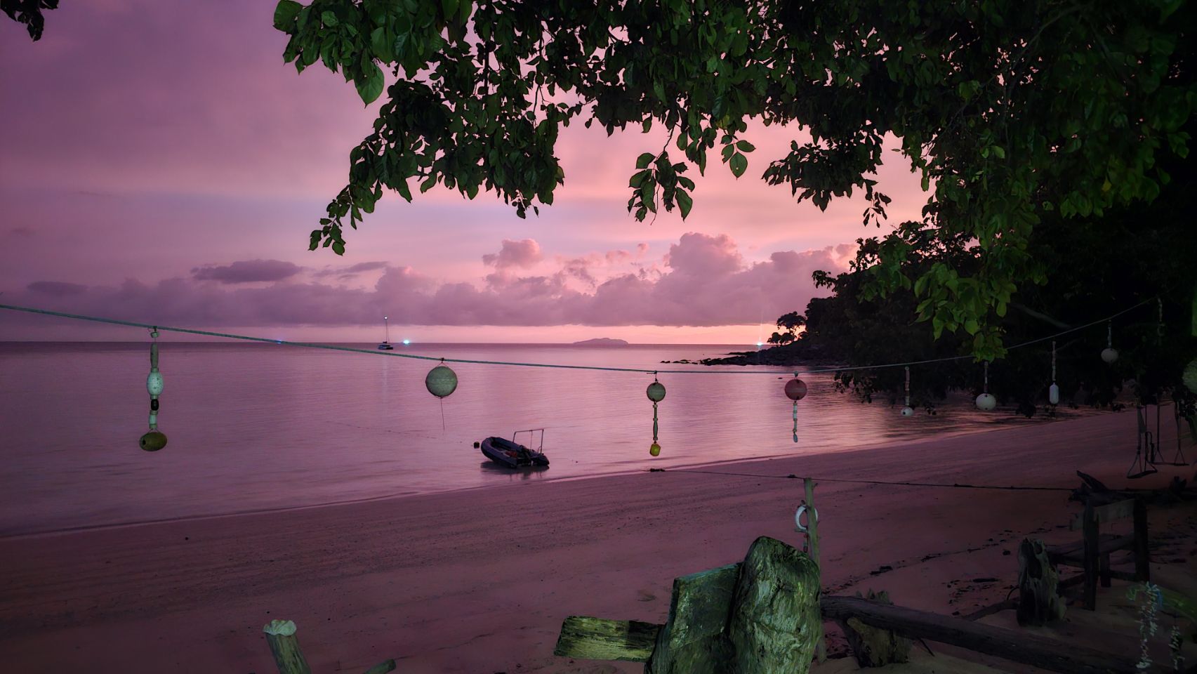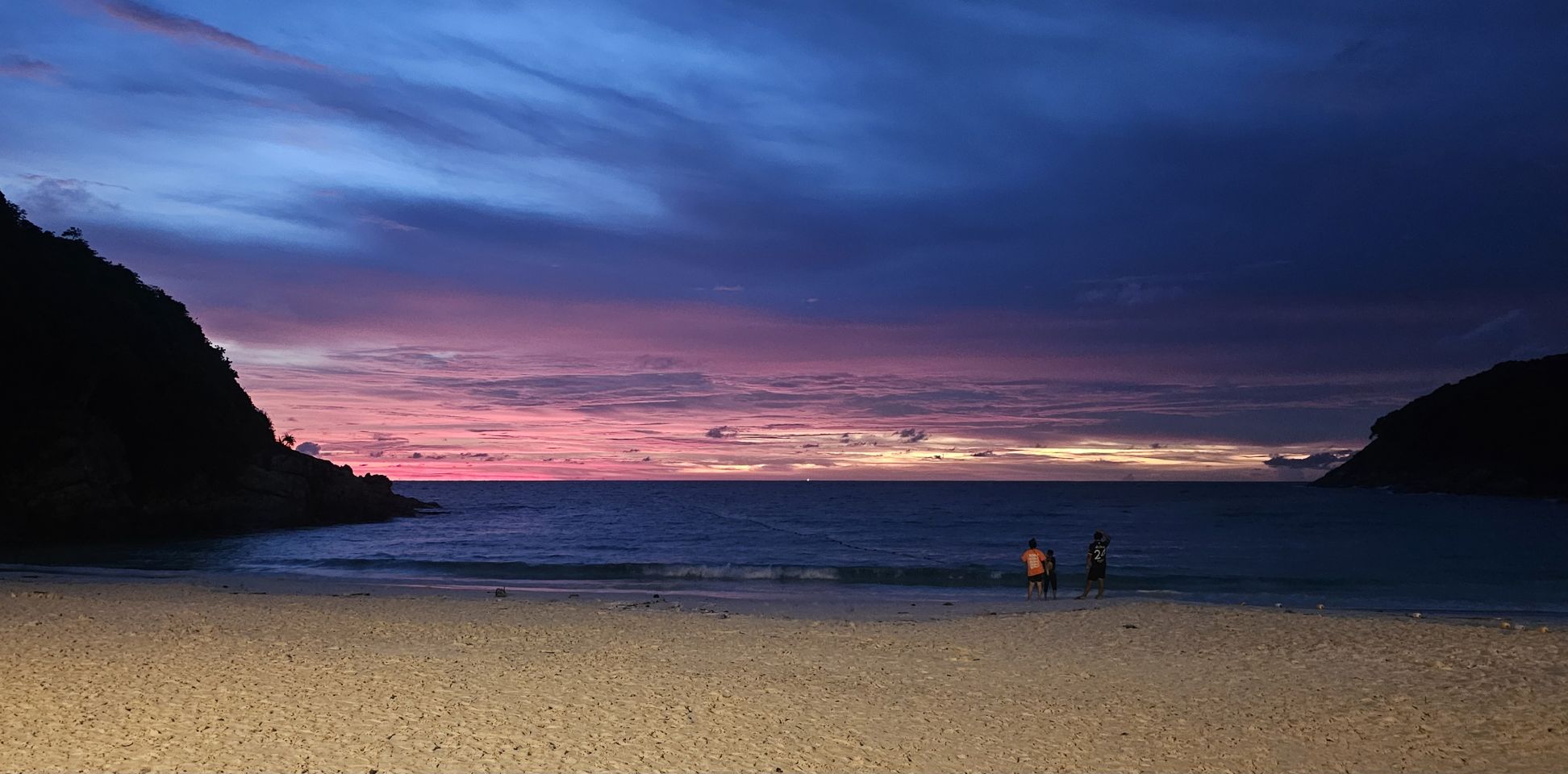 Am Nachmittag ging es weiter zur Hauptinsel Ko Raya. Die Bedingungen blieben ideal, die Crew war im Flow – Sonnenhut auf, Hände am Ruder, der Kurs stand. Am frühen Abend erreichten wir das Ziel. Wir suchten eine kleine Bucht im Osten der Insel. Die Bucht empfing uns ruhig und um uns herum gab es keine weiteren ankernden Schiffe. Der Anker fiel bei untergehender Sonne. Schnell machen wir uns auf den Weg auf die Insel, um den unglaublichen Sonnenuntergang vom Patok Beach aus zu sehen.