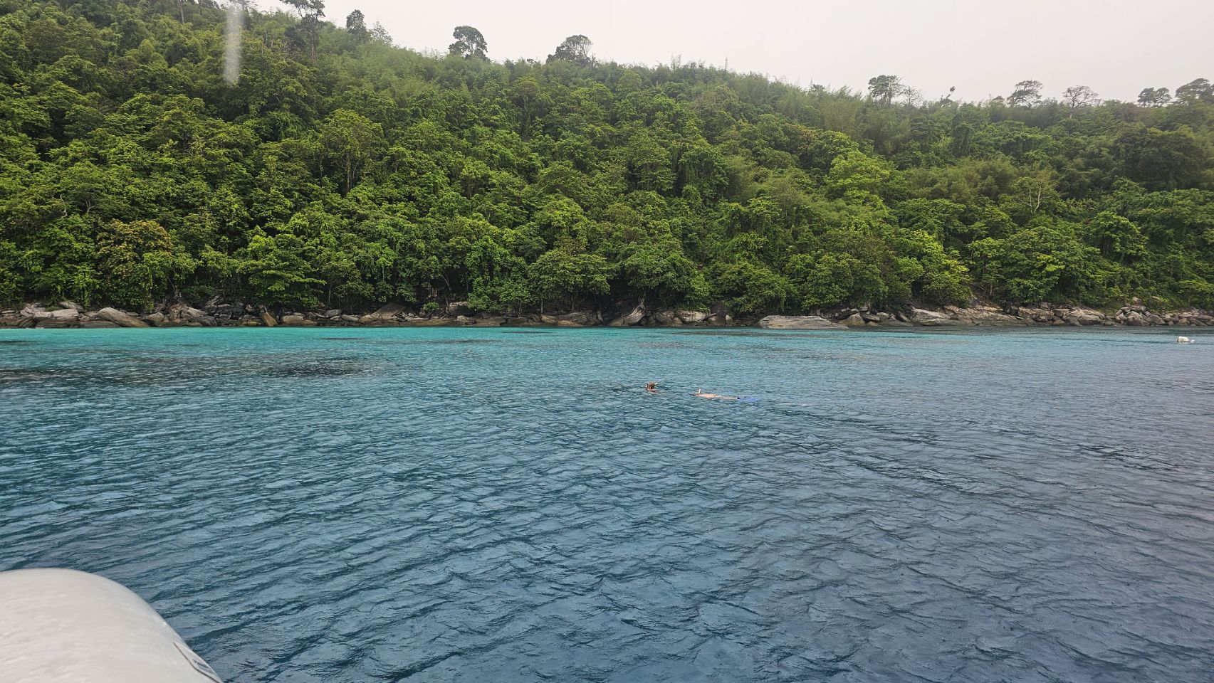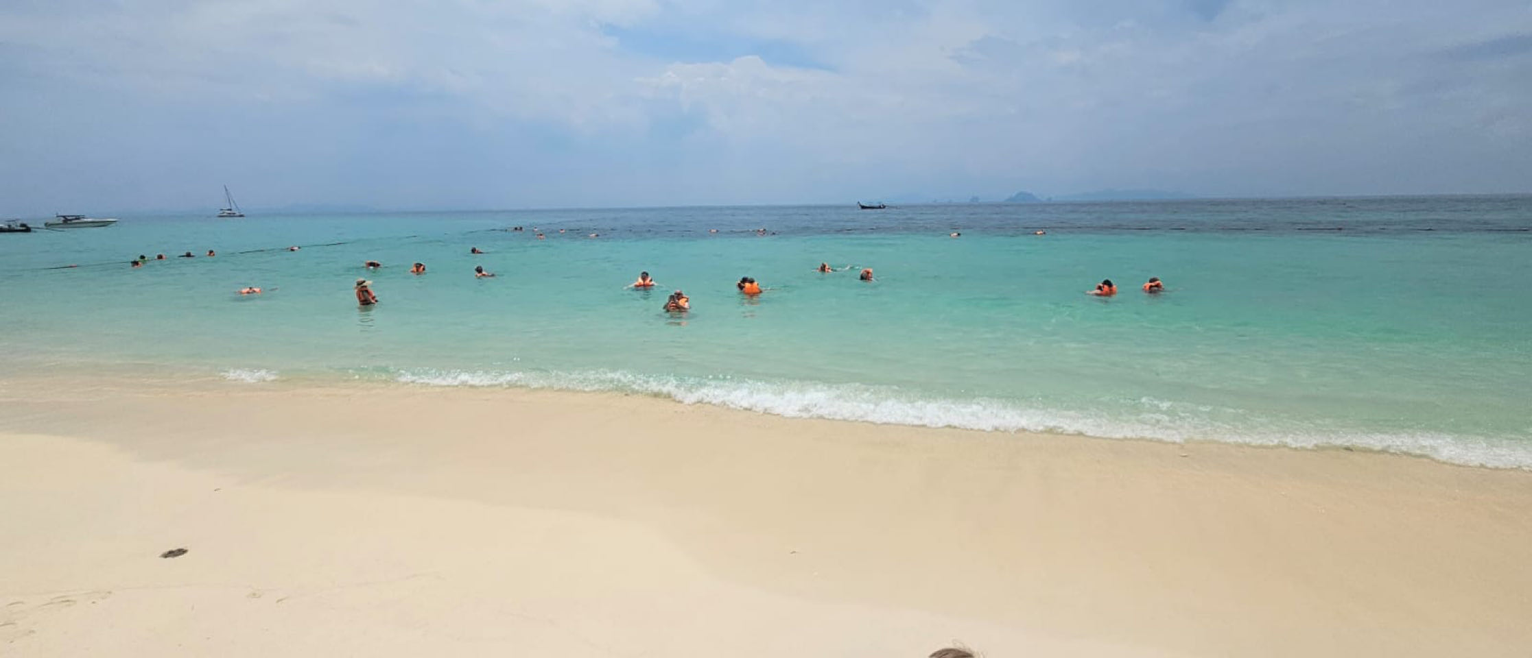 Ein heißer Tag bricht an – über 33 °C, die See ruhig, das Wasser glasklar. Es sind nur wenige Schleierwolken am Himmel. Unsere erste Station ist Ko Poda, eine kleine, schöne Insel mit hellem Sandstrand. Die Crew nutzte die Gelegenheit für ein erstes Schnorchelabenteuer: Taucherbrillen und Flossen raus, rein ins türkisfarbene Wasser – und plötzlich ist man mittendrin im tropischen Fischkino.