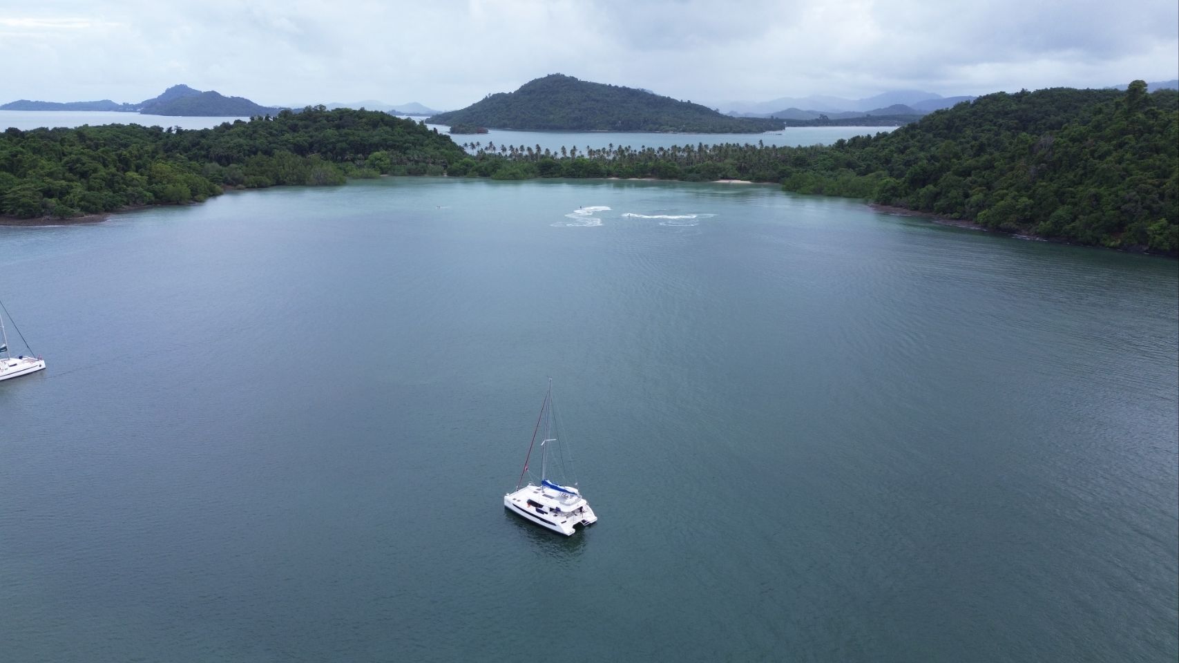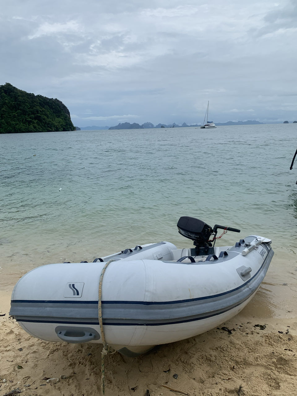 Der Morgen begann entspannt. Wir bereiteten uns für ein ausgedehntes Inselhopping vor. Unser erstes Tagesziel war Ko Pakbia. Durch die kurzen Distanzen hatten wir deutlich mehr Zeit für den Aufenthalt auf den Inseln. Die 5 nm legten wir zügig zurück. Nachdem der Anker sicher eingegraben war, fuhren wir mit dem Dinghy zum kleinen Traumstrand von Ko Pakbia. Der Sand ist fein, das Wasser klar – perfekt für einen Strandspaziergang mit anschließendem Schwimmen. Wer schnorcheln will, findet rund um die Felsen erste Fischschwärme.