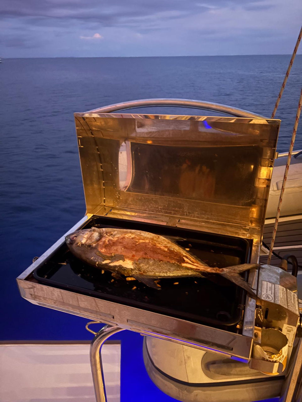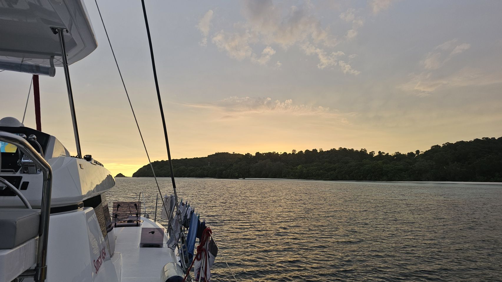 Am Abend fiel der Anker vor Ko Rok Yai, einer kleinen Inselgruppe mit traumhaften Ankerbuchten und kristallklarem Wasser. Der Tag endete stilecht mit frisch gegrilltem Fisch an Bord, die Stimmung war entsprechend entspannt, der Himmel klar, das Meer ruhig – besser kann man einen Segeltag kaum abschließen.
