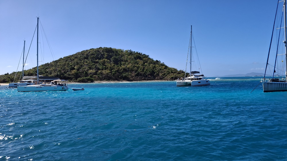 Am Vormittag machten wir einen Abstecher zur Nachbarinsel Baradal. Mit dem Dinghy ging es rüber – Ziel: schwimmen, schnorcheln, entspannen. Doch der Ausflug entwickelte sich anders als gedacht. Die Brandung rund um Baradal war überraschend stark. Zwar kamen wir gut an, aber das Ablegen zurück zu unserem Katamaran gestaltete sich deutlich schwieriger. Ohne die spontane Hilfe anderer Segler hätten wir es vermutlich nicht so einfach zurückgeschafft. Ein kleiner Schreckmoment auf unserem sonst so entspannten Törn.