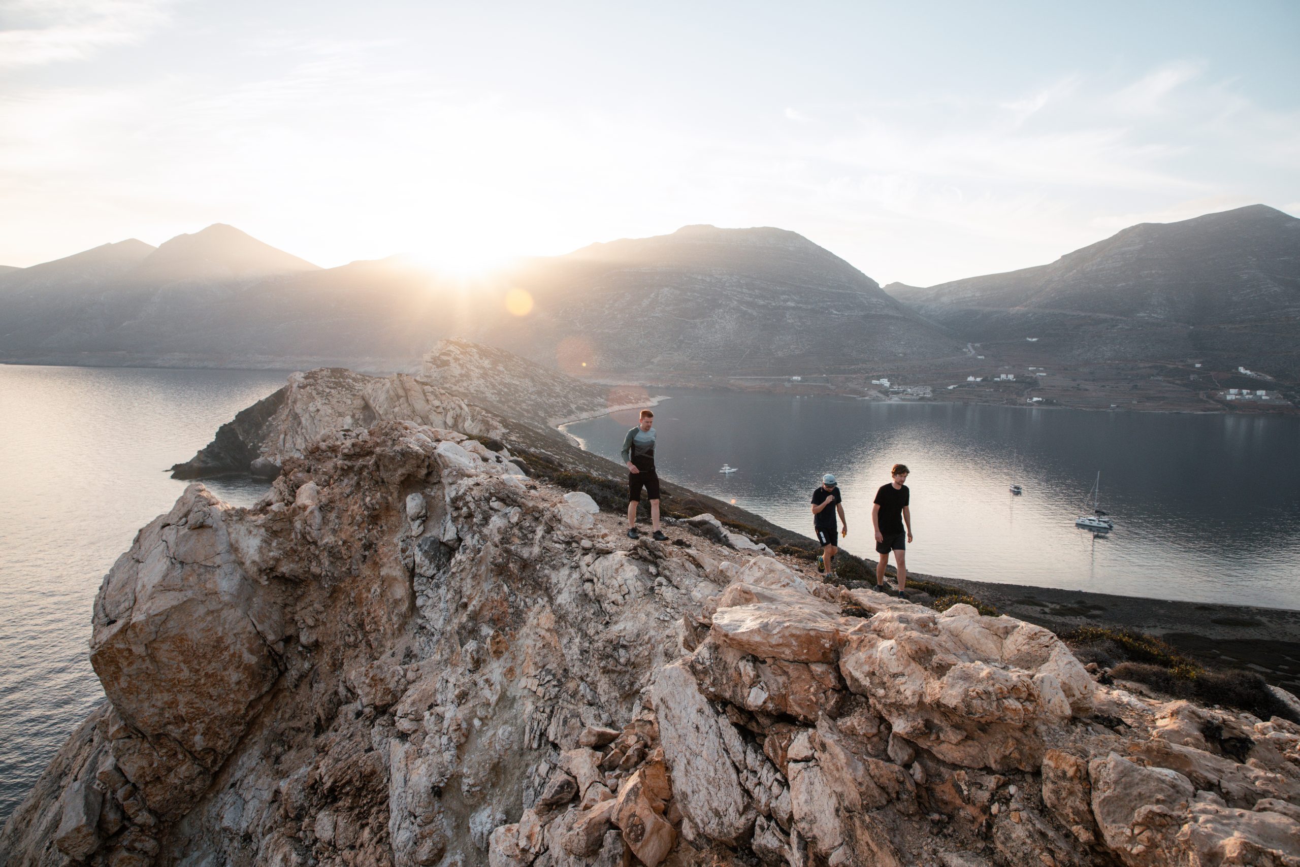Am späten Nachmittag waren wir alle müde vom Kiten und machten uns wieder auf den Weg zurück in die Ankerbucht vor Nisída Dipló, um dort die Nacht zu verbringen. Die Umgebung war ruhig, die Inseln lagen wie gestapelt um uns herum, und das Licht am Abend war besonders klar. Einige von uns gingen noch schwimmen, andere saßen an Deck und ließen den Tag Revue passieren.