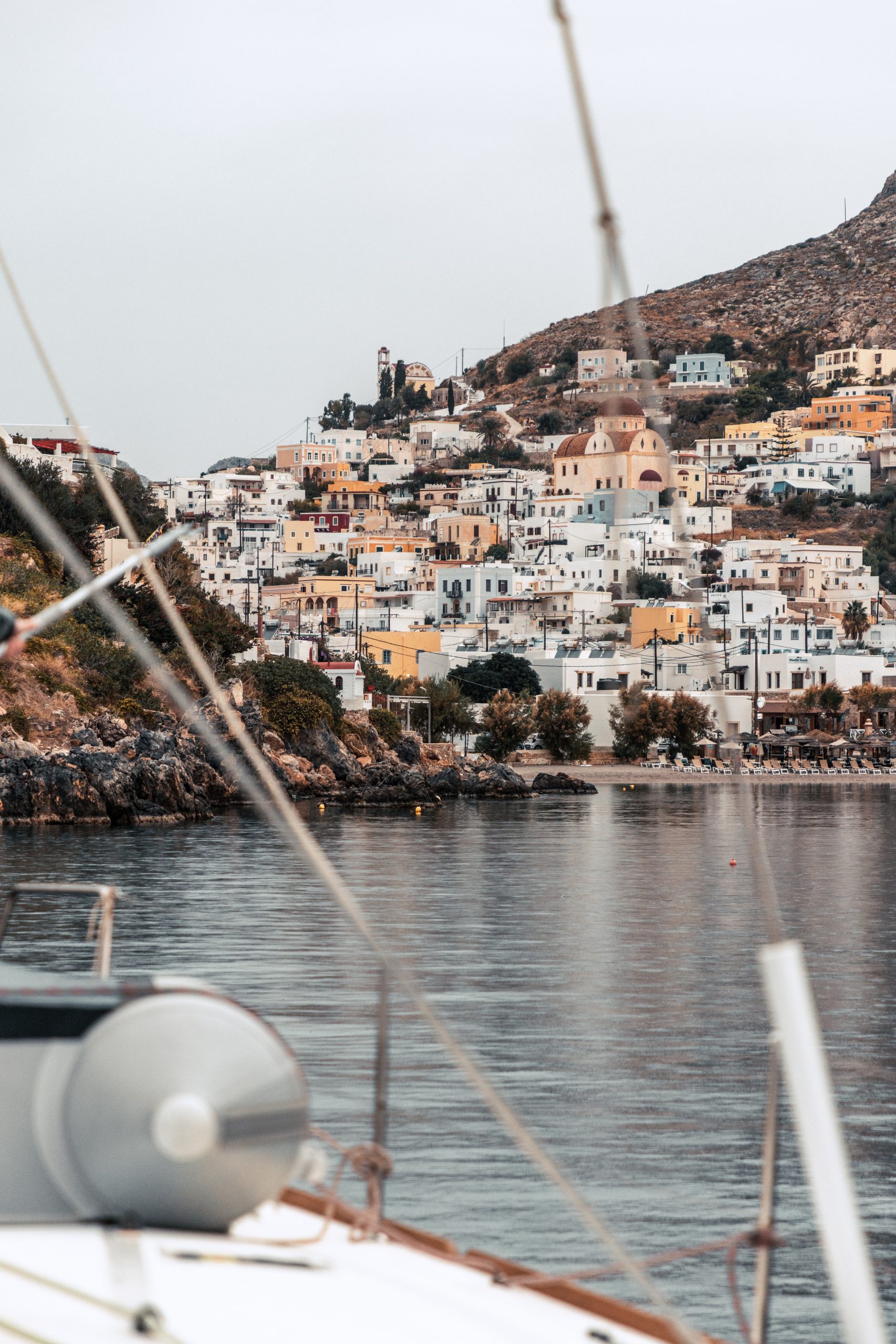 Am Nachmittag setzten wir Kurs auf Leros. Auf dieser Etappe konnten wir direkt die Segel setzen, was für viele an Bord ein schönes Gefühl war, da wir im Vorfeld mögliche Flautetage angekündigt hatten. 11 Seemeilen später erreichten wir die Bucht von Panteli Beach. Hier machten wir an einer Boje fest. Laut Hafenführer hätte diese eigentlich eine kleine Gebühr gekostet, aber es kam niemand vorbei. Vermutlich, weil bereits Nebensaison war.