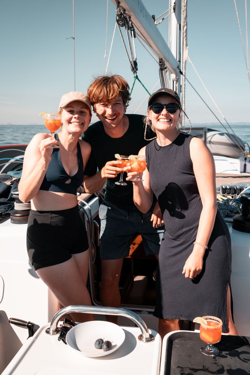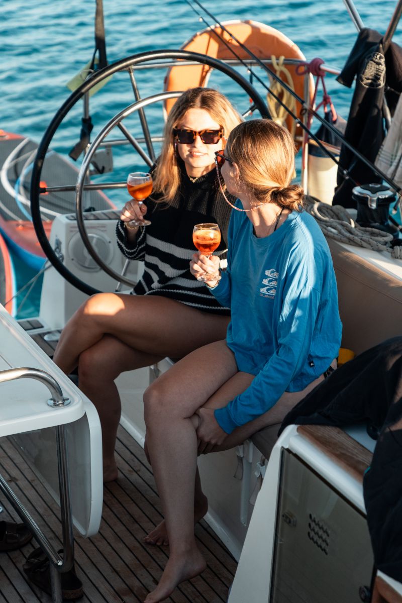 Nach dem Ankern sprangen einige von uns noch ins Wasser, obwohl es bereits dunkel war. Anschließend saßen wir zusammen an Bord, lernten uns als Crew besser kennen und gingen den Plan für die kommenden Tage durch.