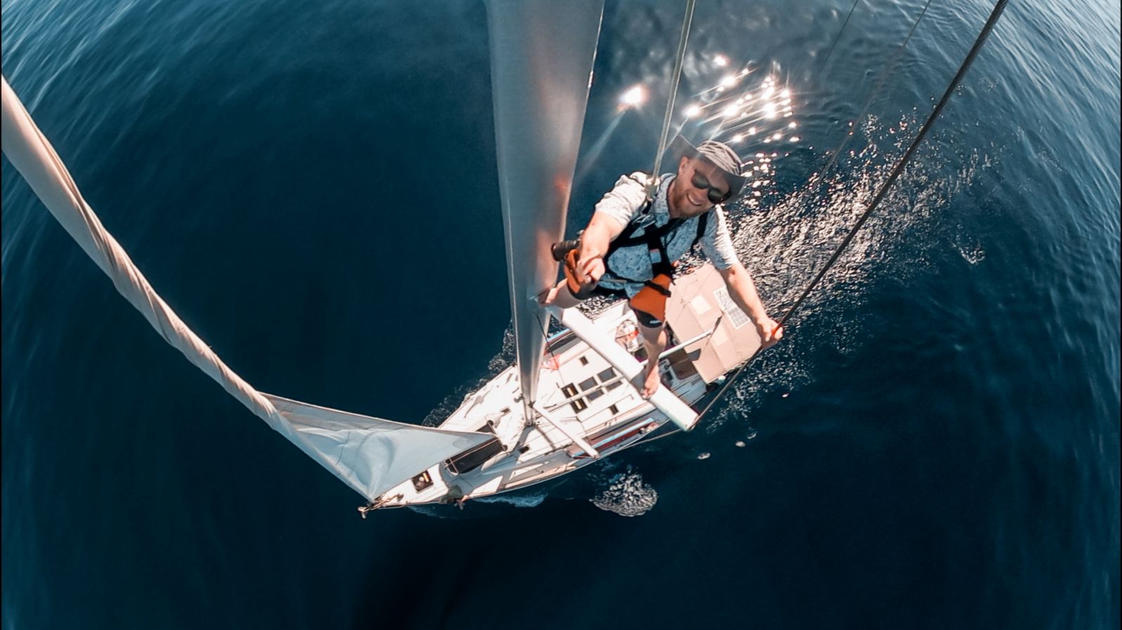 Kurz vor Mittag brachen wir auf. Die See war ruhig, der Wind schwach, sodass wir größtenteils unter Motor fuhren. Zwei Crewmitglieder banden ihre Stand-up-Paddles am Heck fest und ließen sich während der Fahrt gemütlich hinterherziehen.