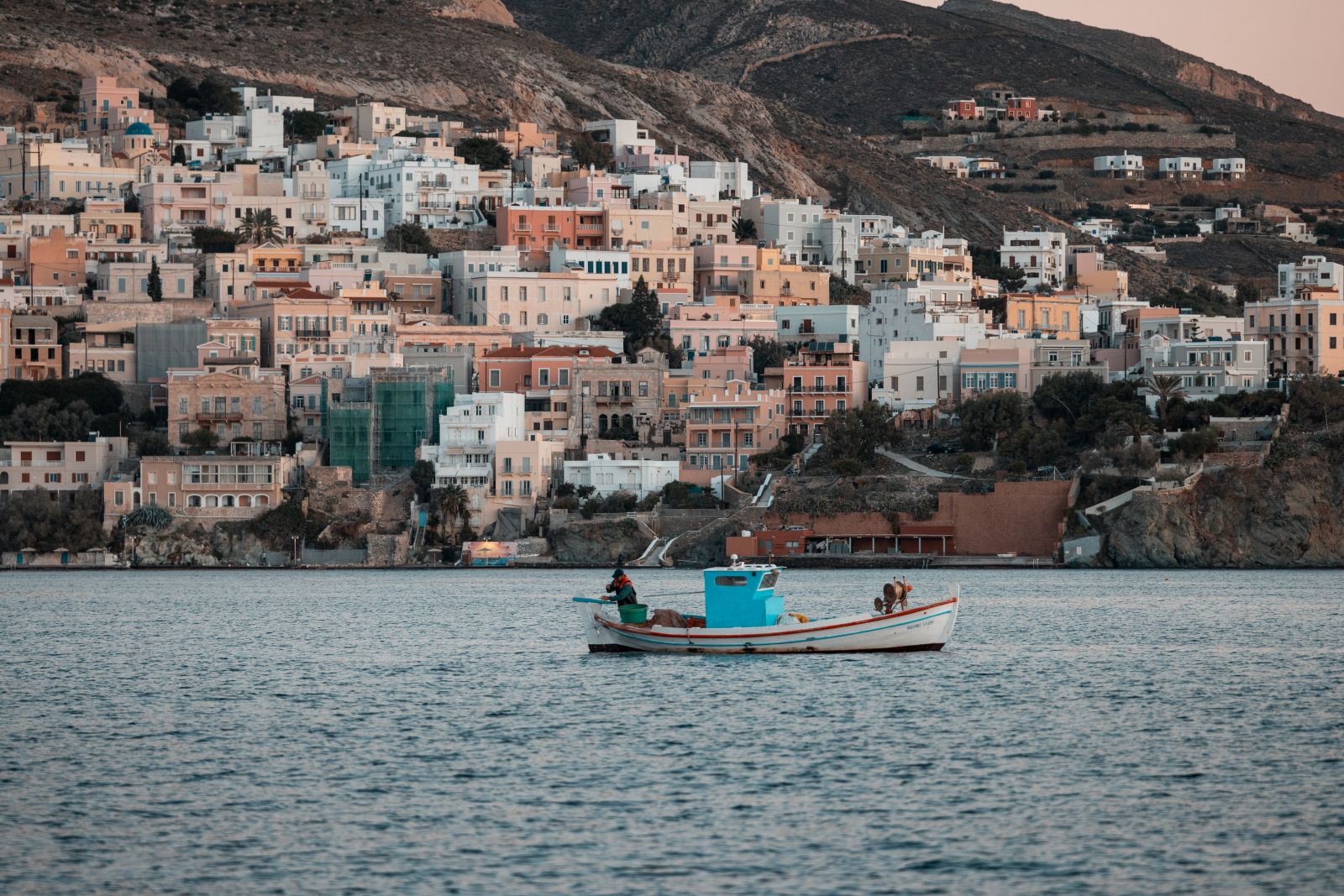 Wir steuerten den Industriehafen von Syros an. Der Kommunalhafen war nicht mehr in Betrieb, sodass man dort problemlos und kostenlos liegen konnte. Wie erhofft konnten wir hier das benötigte Gas kaufen. Als wir alle zurück an Bord waren, wollten wir erst planmäßig weiterfahren. Während wir uns jedoch im Hafen umsahen, merkten wir, dass sich der Ort durch seinen ganz eigenen Charakter gut anfühlte.
