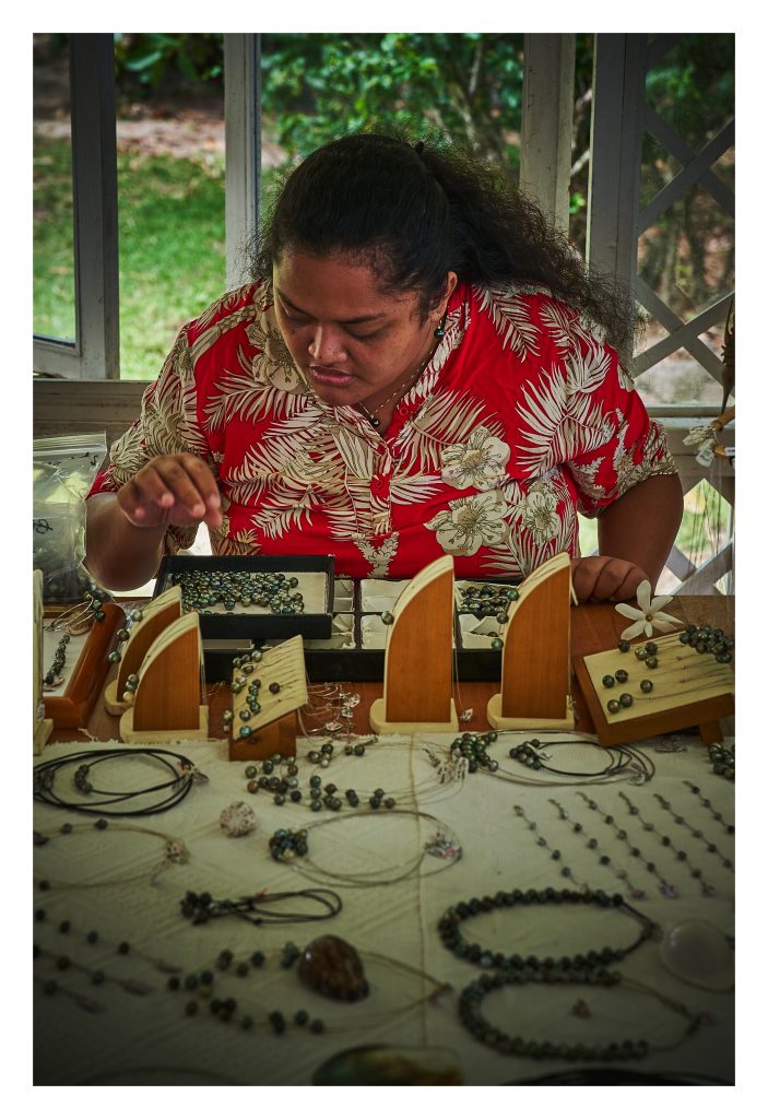 Am nächsten Tag fahren wir mit dem Dingi an Land. Von dort aus ist es ein kurzer Spaziergang zur Champon Pearl Farm. Die Farm sieht eher aus wie ein Privathaus. Wir werden vom Team herzlich empfangen. Auf einer kleinen persönlichen Führung wird uns erklärt, wie Perlen entstehen und wie man sie in der Qualität unterscheiden kann. Es dauert einige Jahre, bis die weißen und schwarzen Perlen geerntet und zu Schmuck bearbeitet werden können. Auf der Farm wird ebenfalls aus diesen Perlen Schmuck hergestellt und angeboten, jedes einzelne Stück ist ein Unikat.