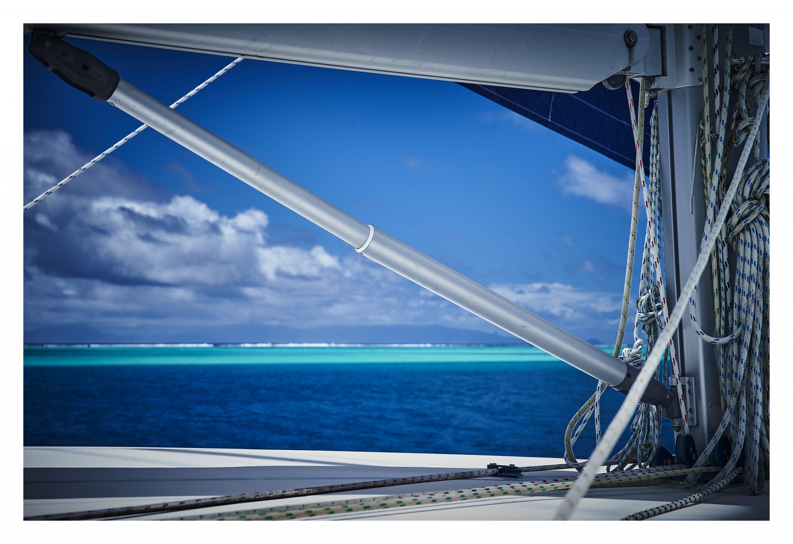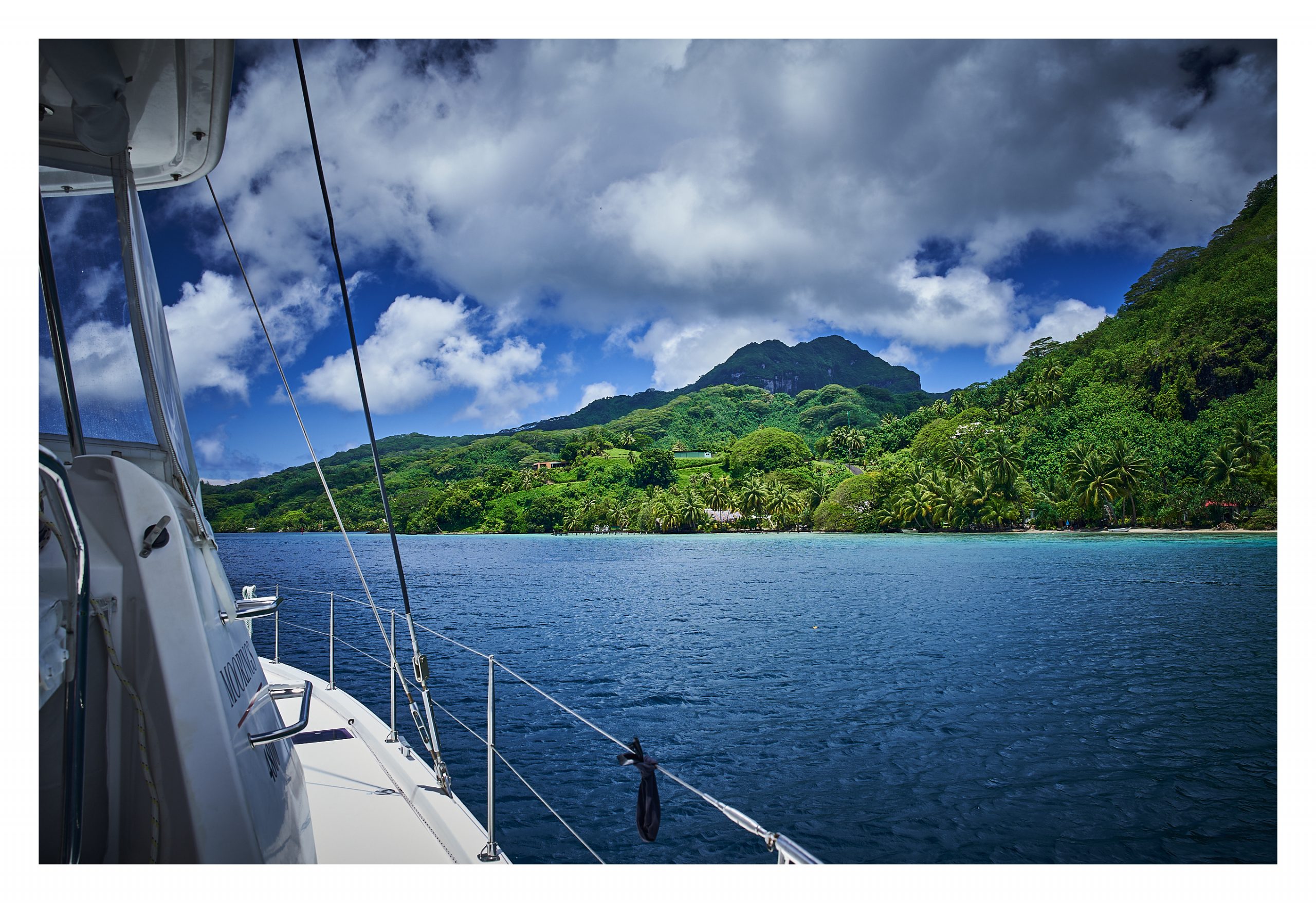 Am Nachmittag verlassen wir bei gutem Wind den Hafen und machen uns auf den Weg Richtung Tahaa. Diese Insel liegt drei Seemeilen nördlich von Raiatea und innerhalb des gleichen Atolls. Die Navigation ist durch die vielen Seezeichen und die vielen kleinen Koralleninseln, sogenannte Motus, schwierig. In Kombination mit dem großen Katamaran sind wir leicht angespannt. Schritt für Schritt probieren wir das Boot aus und gewöhnen uns an die Navigation. Schon bald fällt die Anspannung von uns ab und wir genießen die ersten Stunden beim Segeln.