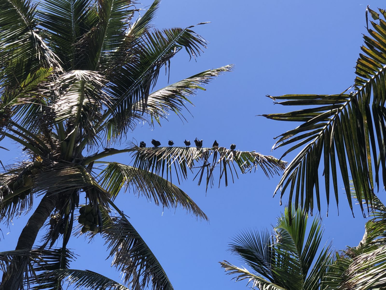 Der Palmenwald im Vallée de Mai ist UNESCO-Welterbe, ein einzigartiges Ökosystem. Ein Führer lohnt sich auf alle Fälle, da man sonst zu viel verpasst. Die Coco de Mer, die Nuss der Seychellenpalme, ist beeindruckend. Vor allem ist die Fortpflanzung der Palmen mit ihren weiblichen Früchten und männlichen Blüten erstaunlich. Jerry holte uns danach wieder ab und auf dem Weg zurück konnten wir noch einkaufen und unser Proviant auffüllen. Abends legten wir in Richtung Aride ab. Dort hatten wir uns für eine weitere Führung angemeldet, die am Dienstagmorgen um 9 Uhr beginnen sollte. Da fast kein Wind vorausgesagt war, wollten wir im Süden vor Aride ankern, um schon vor Ort zu sein. Das war ein Fehler! Wir ankerten auf 5m im Sand und konnten zunächst die vielen Vögel bewundern, die am Himmel ihre Kreise zogen. Nach einem traumhaften Sonnenuntergang wurden wir jedoch von Unmengen an Insekten überfallen. Wir wurden nicht gebissen oder gestochen, aber es war schon unangenehm. Wir wissen nicht, ob es die Windstille oder die Nähe zum Vogelschutzgebiet war. Jedenfalls würden wir allen anderen Crews empfehlen, erst am Morgen anzureisen.
