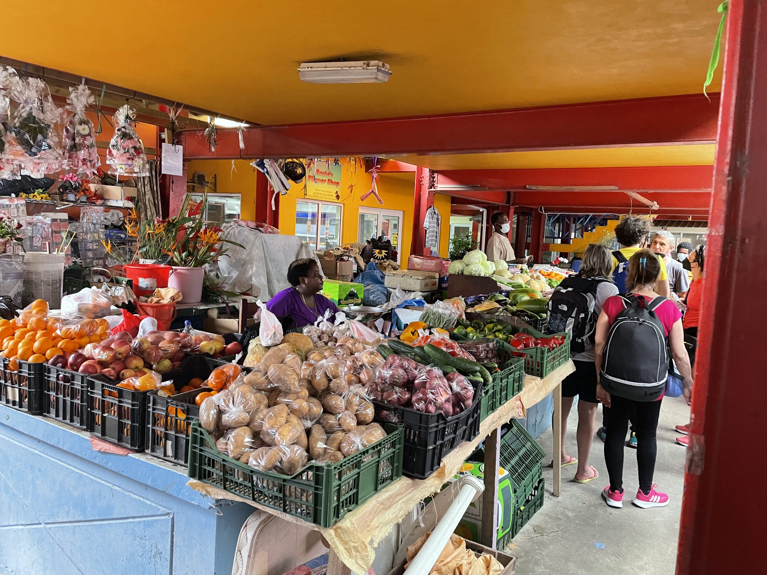 Um 5 Uhr morgens auf Mahé anzukommen, ist leider nicht die angenehmste Art anzureisen. Zumindest nicht, wenn man im Flugzeug nicht gut geschlafen hat. Wir gingen es jedoch gemütlich an, gingen frühstücken und haben dann in aller Ruhe mit der Proviantierung begonnen. Dazu machten wir per Taxi einen Ausflug zum Sir Selwyn-Clark Market in Victoria, definitiv ein Erlebnis. Mangos, Avocados, Ananas, Salat, Zwiebeln, Knoblauch, Zitronen, Limetten, Tomaten, Curry und Gewürzmischungen, frisch und im Vergleich zum Supermarkt relativ günstig. Die Päckchen werden dort immer so zusammengepackt, dass zwei Teile am nächsten Tag reif sind und die restlichen nach 2-3 Tagen, also perfekt.