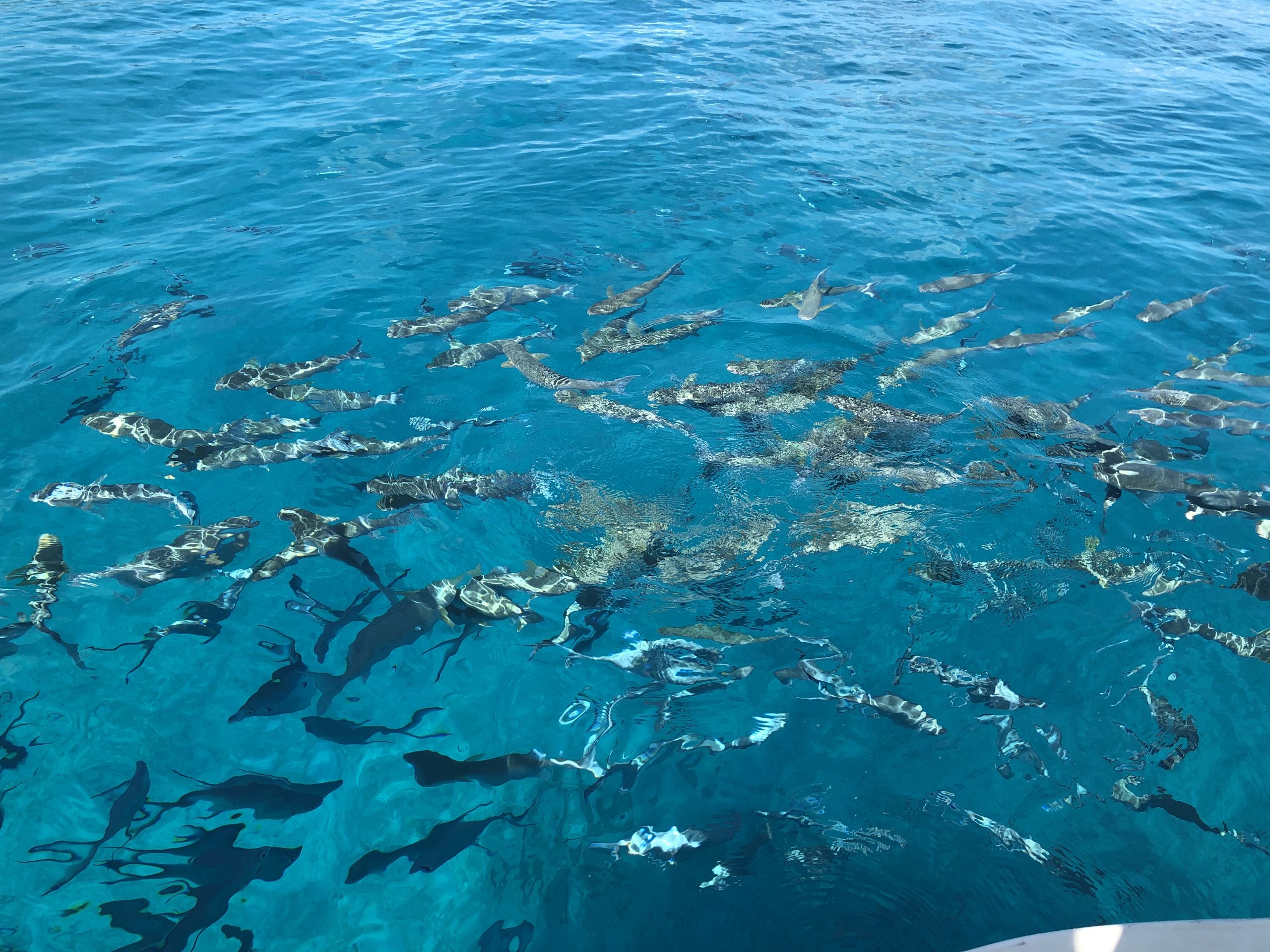 Mit neuer Wasserpumpe brachen wir morgens in Richtung Saint Pierre auf. Der Schnorchelstop an der Boje des Marine Parks fiel jedoch kürzer als erwartet aus, da gerade unglaublich viele Quallen dort waren. Es war, als würden wir durch Sago schwimmen, unglaublich. Fischschwärme durchpflügten mit weit offenen Mäulern das Wasser, um sich so richtig satt zu fressen. Ein erstaunliches Spektakel, aber etwas unangenehm zu schnorcheln, da die Quallen nach einer Weile schon etwas pieksen.