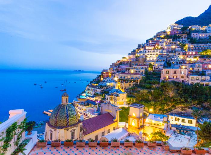 Die Amalfiküste beeindruckt durch die landschaftlich bedingte terrassenförmige Bauweise, welche insbesondere in Positano vom Meer aus sehr gut zu bestaunen ist. Vom kleinen Fischerdorf hat sich der Ort im Laufe der Zeit zu einem exklusiven Kleinod der Amalfiküste entwickelt und besticht mit seinen farbenfrohen Häusern. Auch Amalfi, der namensgebende Ort des Küstenstreifens, liegt romantisch am Küstenhang und lädt zum Anlegen ein. Hier lohnt es sich, in den Dom mit schönem Kreuzgang und Museum hineinzuschauen und auf dem vorgelagerten Platz das bunte Treiben von einem der Cafés aus zu genießen. Von Ravello aus hat man einen tollen Ausblick auf den Golf von Salerno. Das Städtchen ist vor allem bekannt durch die jährlich stattfindenden Wagner-Musikfestspiele. Imposante Steilklippen und Schluchten erlebt man im Fjord von Furore. Wer Treppensteigen nicht scheut, kann bis in das kleine Fischerdorf hinaufsteigen und wird dort mit Ausblick und Ruhe belohnt. Per Boot können Sie auch die Grotta Smeralda, die Smaragdgrotte, erkunden. Maiori und Minori sind mit ihren schönen Sandstränden als Badeorte sehr beliebt. Genießen Sie die Ruhe und die typischen Gerichte und Produkte vor Ort. Auch das kleine Fischerdorf Praiano punktet mit Stränden, Entspannung und weniger Tourismus als in den anderen Orten der Küste.