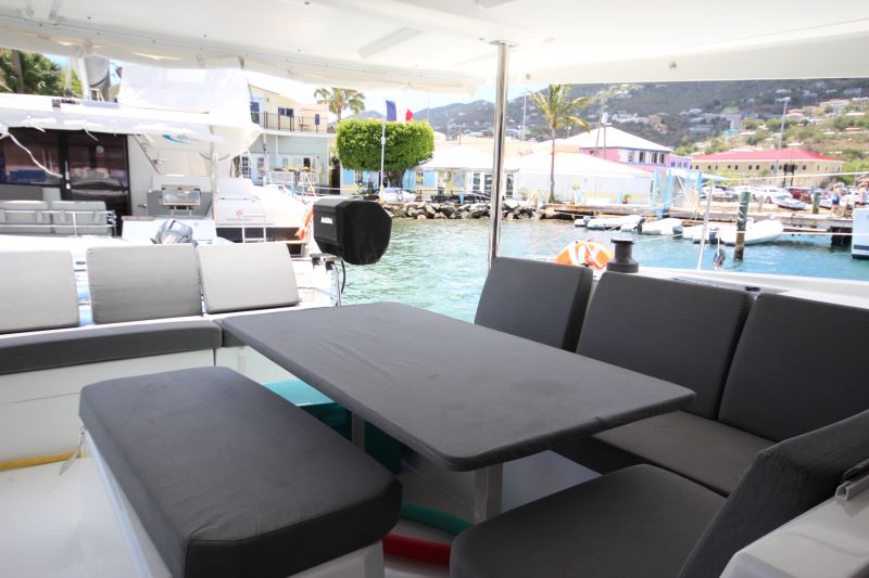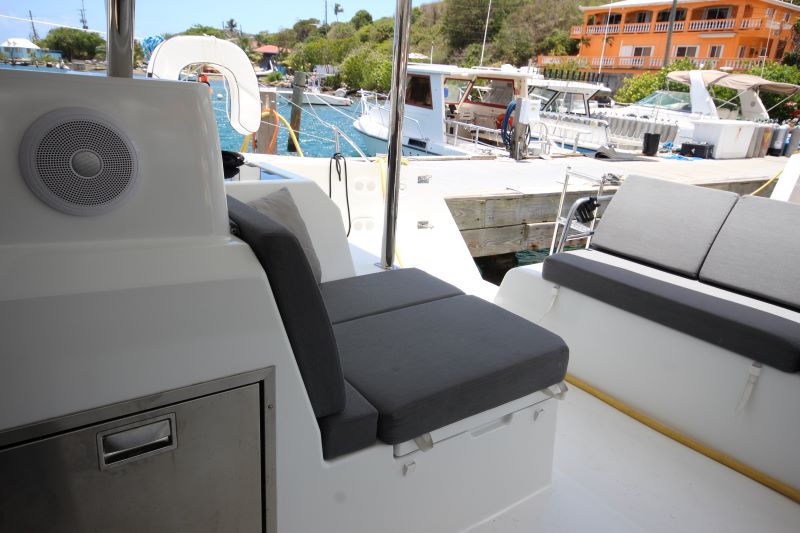 | Outside | Badeplattform, Biminitop, Cockpittisch, Deckpolster, elektr. Ankerwinsch, Grill, Solaranlage, Sprayhood, Teak im Cockpit |