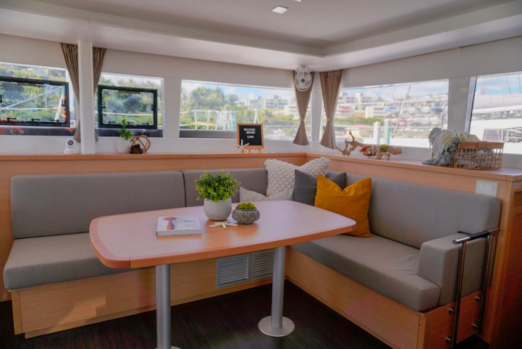 | Inside | DVD-Player, Eiswürfelmaschine, Gefrierschrank, Generator, Inverter 12V/220V, Klimaanlage, Kühlschrank, Ladegerät, Mikrowelle, TV, USB Steckdose, Ventilatoren in Kabinen, Waschmaschine, Watermaker, WC-Pumpe |