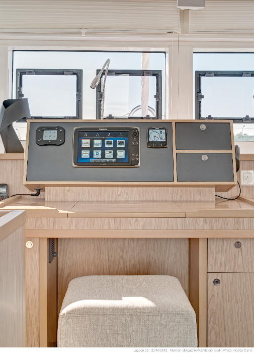 | Navigation | Echolot, GPS mit Kartenplotter, Sumlog, Tridata (Log, Echolot, Windm.), Windmesser |