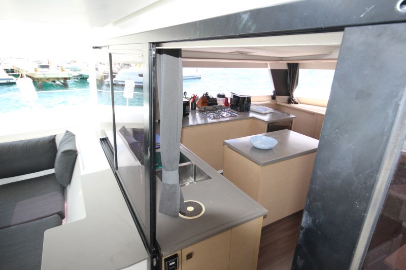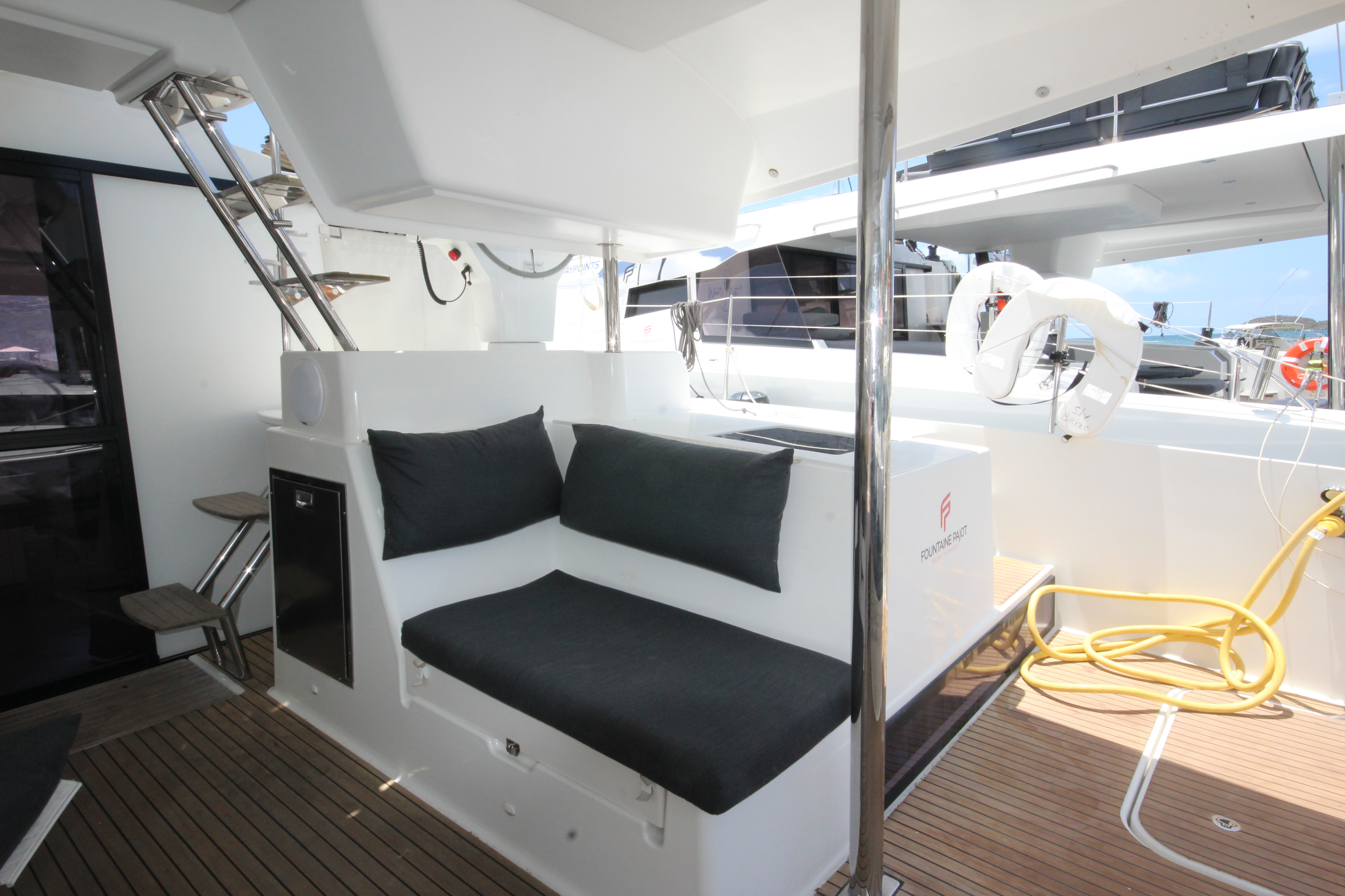 | Outside | Badeplattform, Biminitop, Cockpittisch, Deckpolster, elektr. Ankerwinsch, Grill, Solaranlage, Sprayhood |