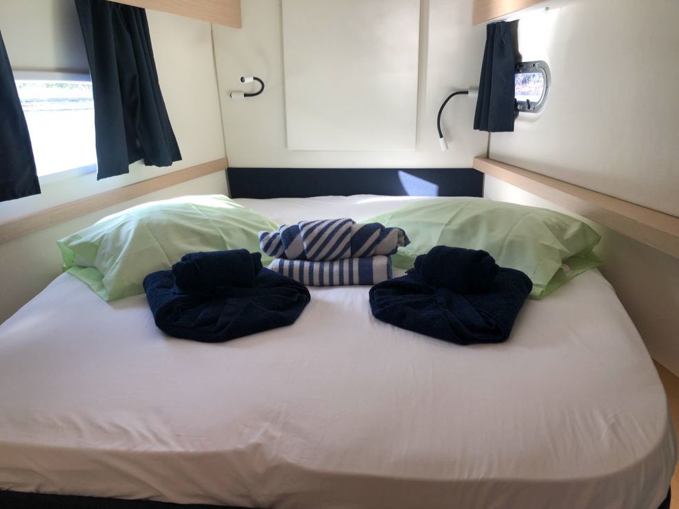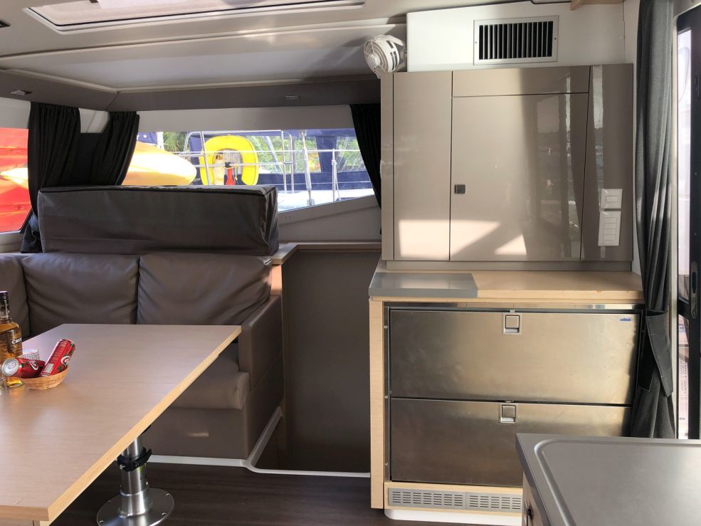 | Inside | 12V/220V-Steckdosen, FUSION Sound System, Gasherd mit Backofen, Generator, Inverter 12V/220V, Klimaanlage (ohne Landstrombedarf), Kühlschrank, Radio mit Bluetooth, Salontisch absenkbar, Ventilatoren in Kabinen, Watermaker, WC (elektr.) |