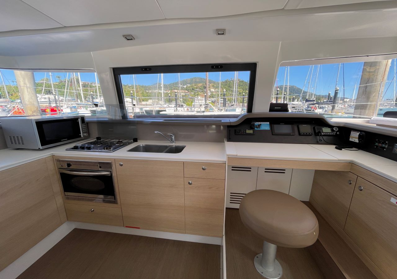 | Inside | Gasherd mit Backofen, Inverter 12V/220V, Kühlschrank, Pantryausstattung, TV + DVD, Ventilatoren in Kabinen |