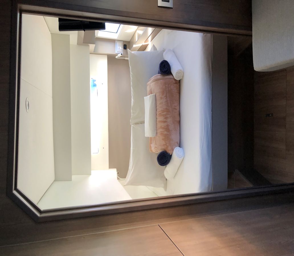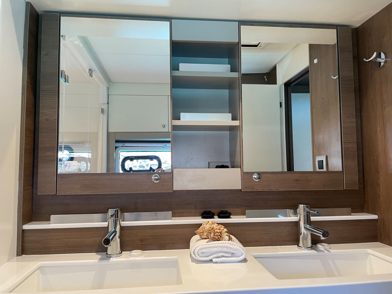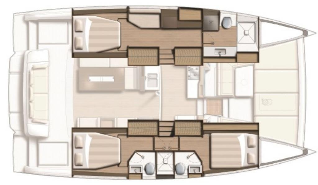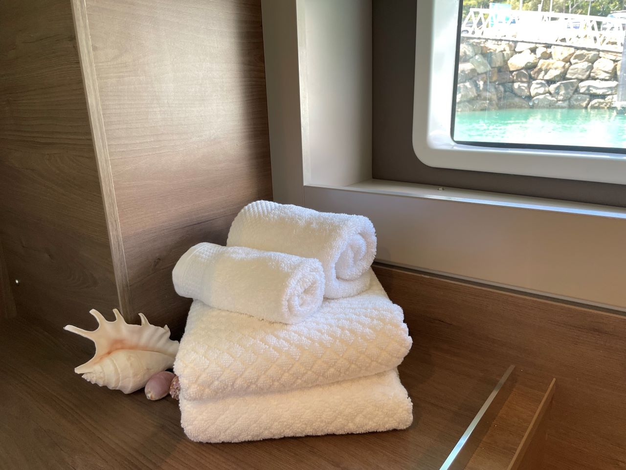 | Inside | Backofen, Gasherd, Gefrierschrank, Generator, Geschirrspüler, Inverter 12V/220V, Klimaanlage (ohne Landstrombedarf), Kühlschrank, Mikrowelle, Moskitonetze, Radio, Ventilatoren in Kabinen, WC (elektr.) |