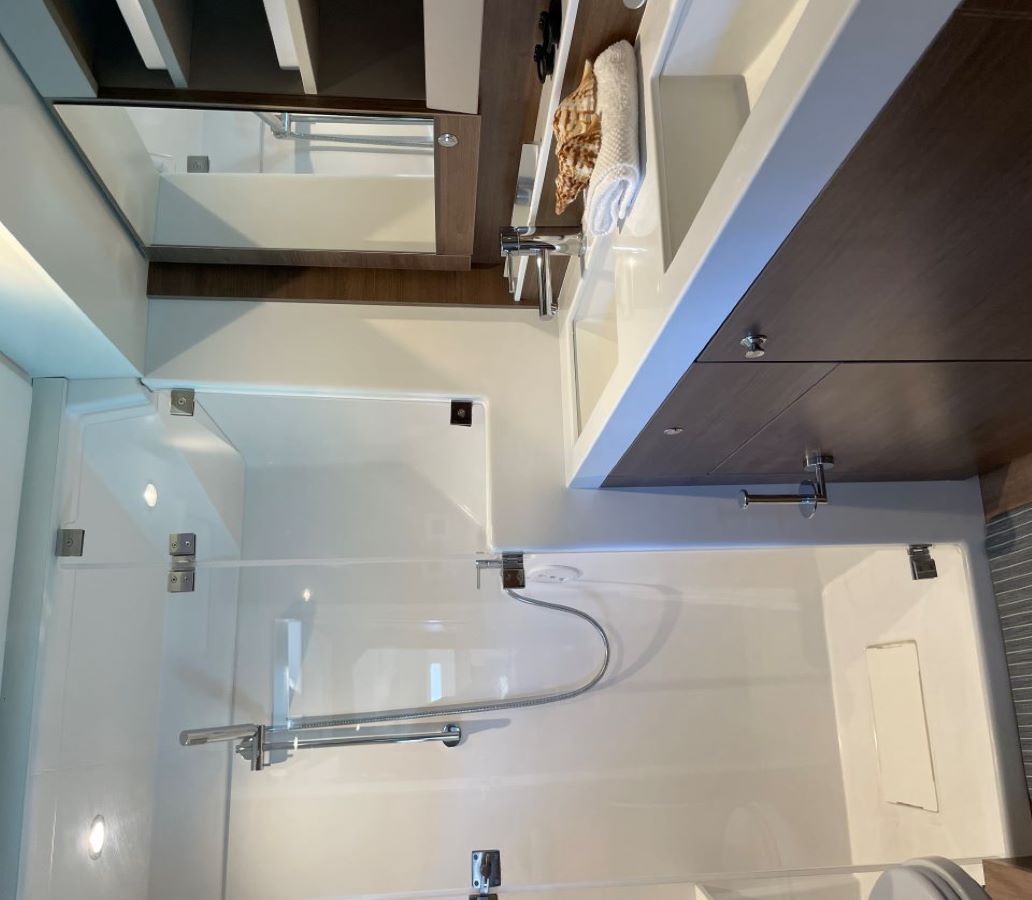 | Outside | Badeleiter, Biminitop, Cockpitdusche, Cockpitpolster, Cockpittisch, Davits, elektr. Ankerwinsch, elektr. Winsch, Grill, Selbstholende Winschen, Solaranlage |