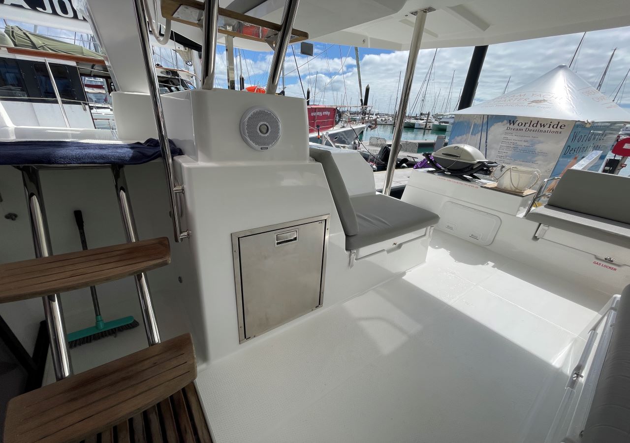 | Outside | 12 V-Anschluss, Badeleiter, Biminitop, Cockpitdusche warm/kalt, Cockpitkühlschrank, Cockpitpolster, Cockpittisch, Davits, elektr. Ankerwinsch, elektr. Großwinsch, Selbstholende Winschen, Solaranlage |