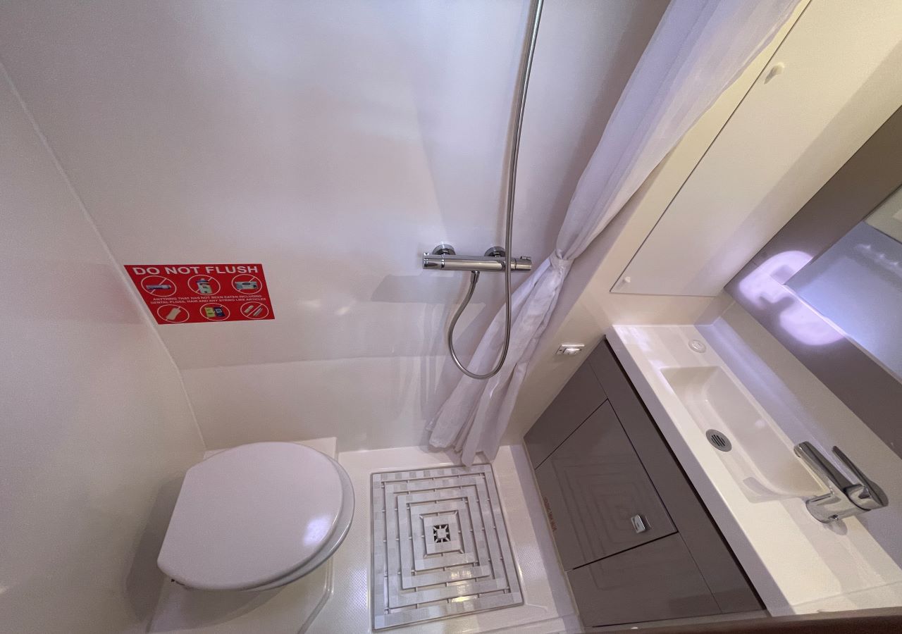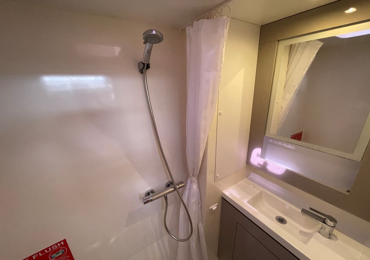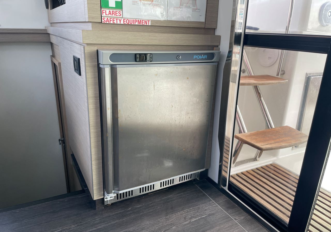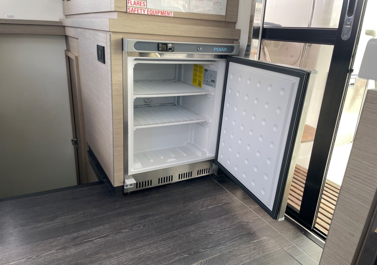 | Inside | Gasherd mit Backofen, Gefrierschrank, Generator, Inverter 12V/220V, Klimaanlage (ohne Landstrombedarf), Kühlschrank, Pantryausstattung, Radio mit Bluetooth, Salontisch absenkbar, Spülbecken, Ventilatoren in Kabinen, WC-Pumpe |