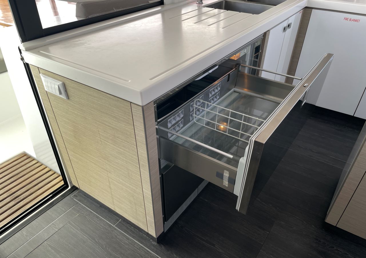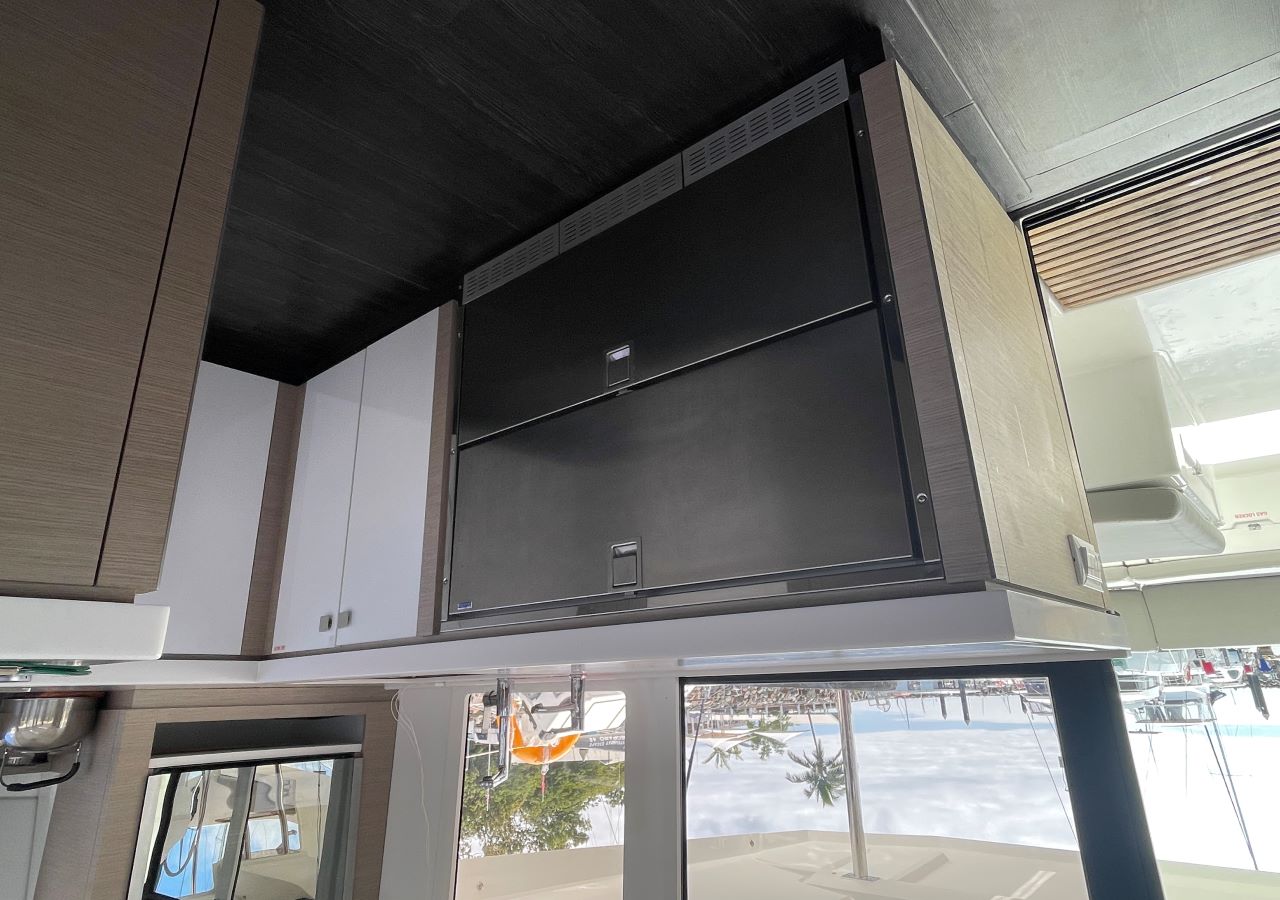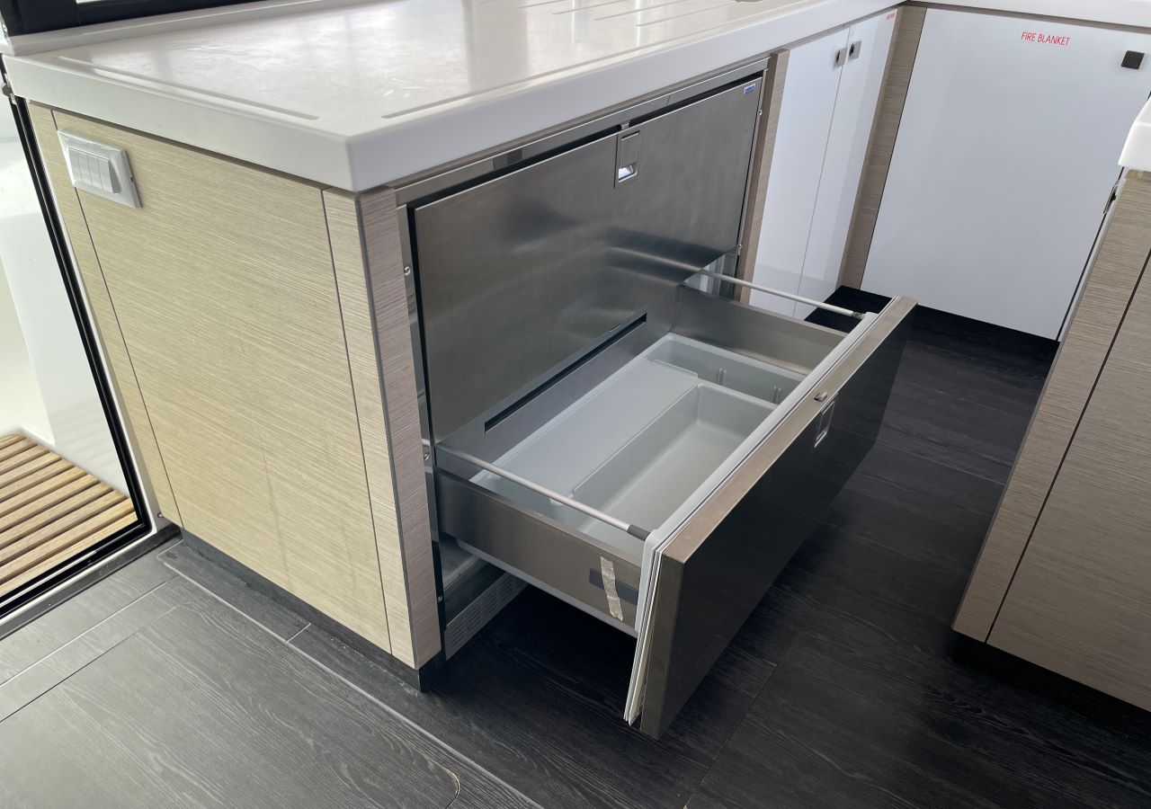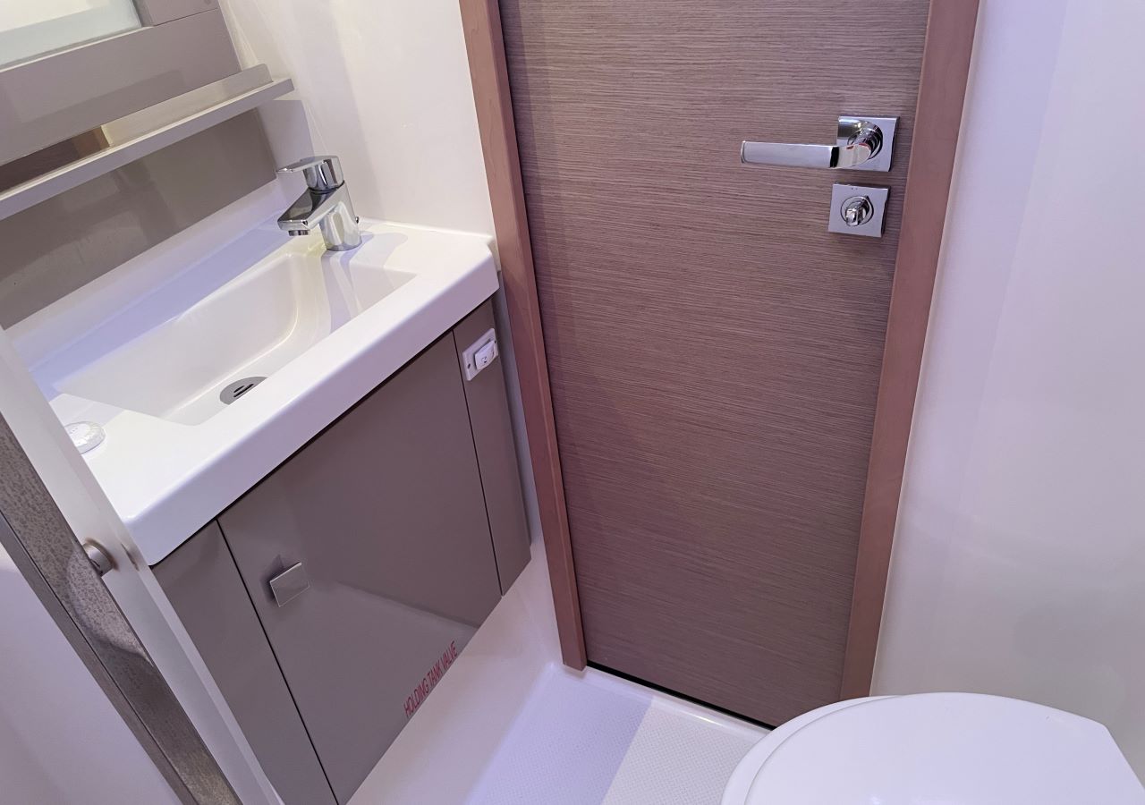 | Inside | Gasherd mit Backofen, Gefrierschrank, Generator, Inverter 12V/220V, Klimaanlage (ohne Landstrombedarf), Kühlschrank, Pantryausstattung, Radio mit Bluetooth, Salontisch absenkbar, Spülbecken, Ventilatoren in Kabinen, WC-Pumpe |