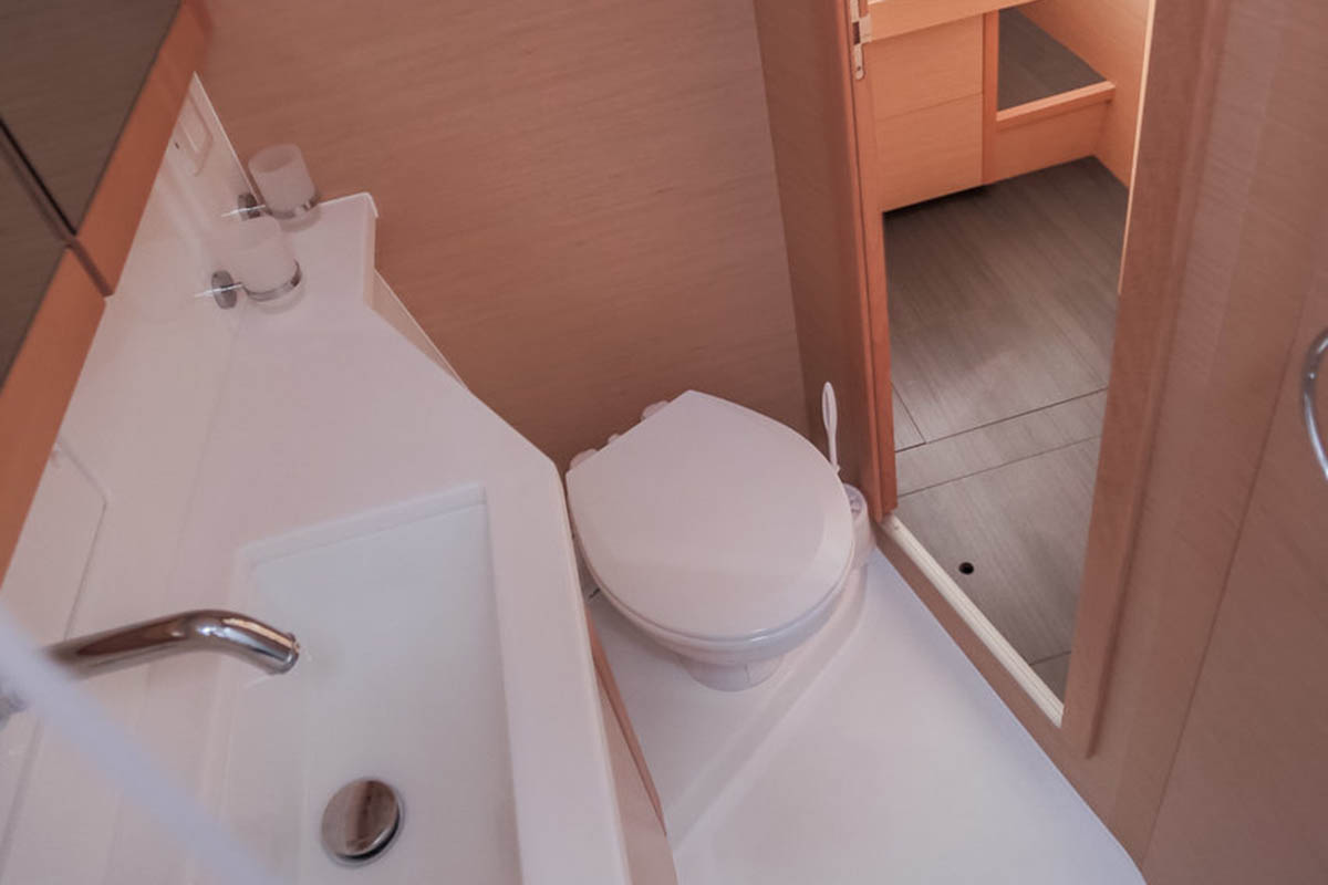 | Outside | 220 V-Landanschluss, Anker mit Kette, Badeleiter, Badeplattform, Biminitop, Cockpitdusche, Cockpitkühlschrank, Cockpitlautsprecher, Cockpitpolster, Cockpittisch, elektr. Ankerwinsch, elektr. Winsch, Grill, Kühlschrank auf Flybridge, Teak im Cockpit, Winschen |