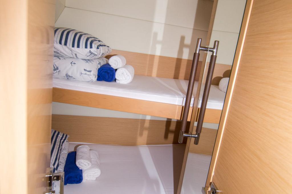 | Inside | 220V Steckdosen, Dusche, Gasherd mit Backofen, Generator, Inverter 12V/220V, Klimaanlage, Ladegerät, Radio mit CD/MP3/USB (Ipod möglich), Ventilator, Ventilatoren in Kabinen, Watermaker, WC |