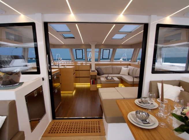 | Inside | Dusche, Eiswürfelmaschine, Gasherd mit Backofen, Gefrierschrank, Generator, Inverter 12V/220V, Klimaanlage, Kühlschrank, Radio mit USB und Bluetooth, Ventilator, Ventilatoren in Kabinen, WC (elektr.) |