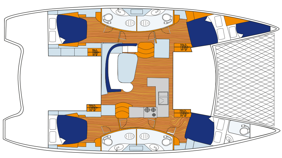 | Kabinen: | 4+1 | Kojen: | 8+2+1 |
