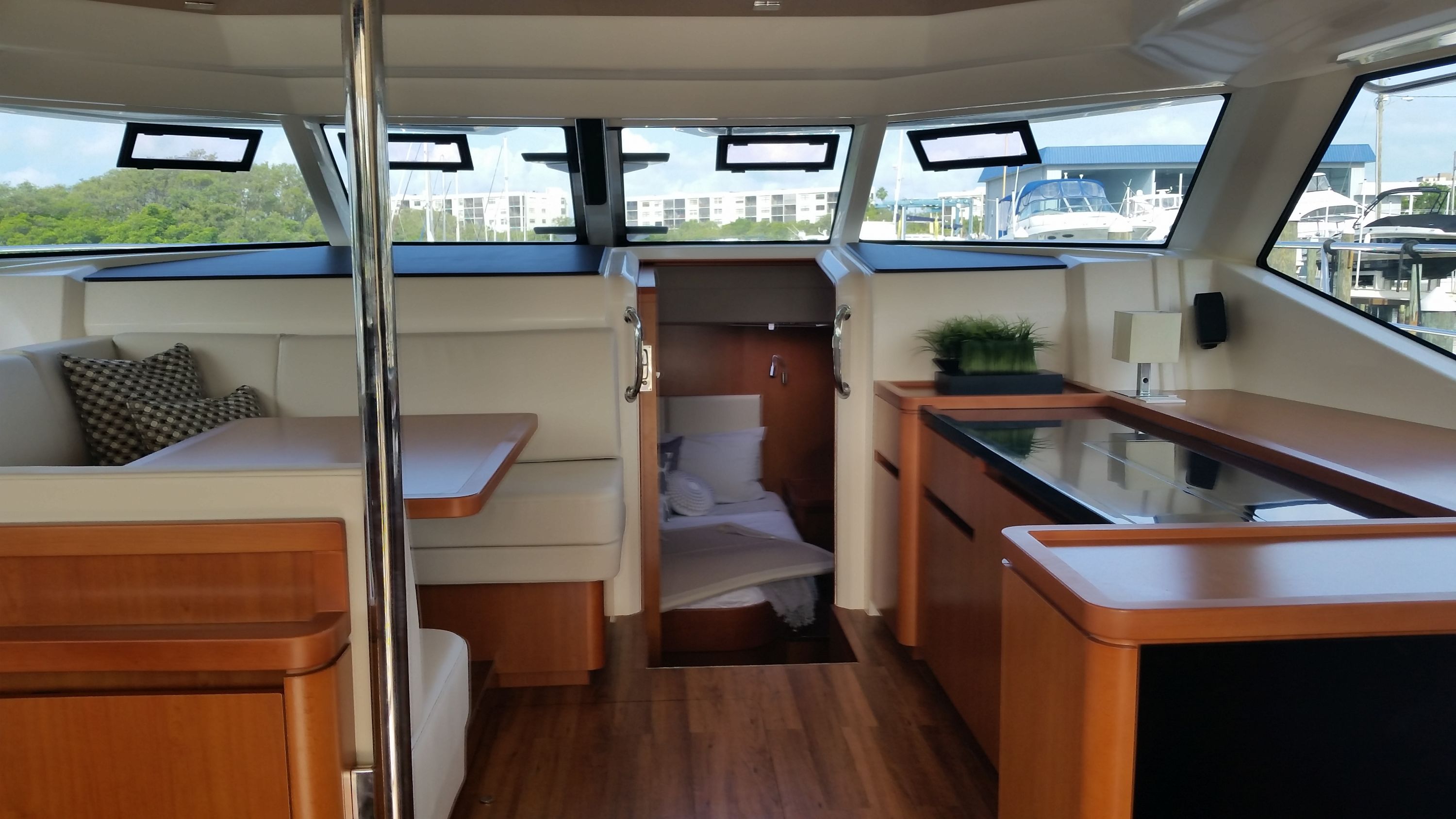 | Outside | Biminitop, Cockpitkühlschrank, Cockpitpolster, Cockpittisch, elektr. Ankerwinsch, Flybridge, Grill |