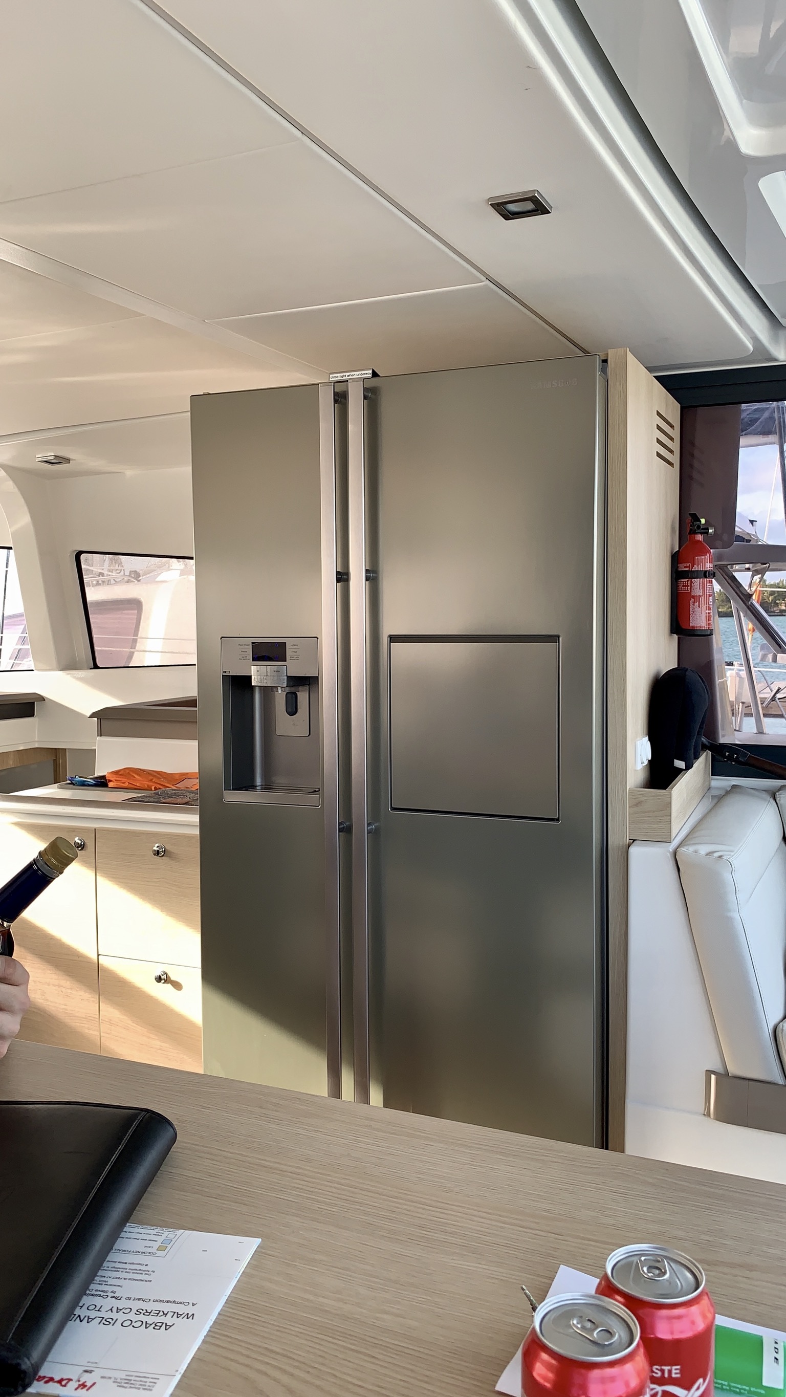 | Inside | Backofen, Dusche, Eiswürfelmaschine, Gasherd, Generator, Inverter 12V/220V, Klimaanlage, Kühlschrank mit Gefrierfach, Ladegerät, Radio mit Bluetooth, Salontisch absenkbar, Watermaker, WC (elektr.) |
