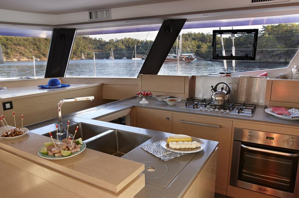 | Inside | 220V Steckdosen, Dusche, Eiswürfelmaschine, Gefrierschrank, Generator, Geschirrspüler, Inverter 12V/220V, Klimaanlage (ohne Landstrombedarf), Kühlschrank, Ladegerät, Mikrowelle, Pantryausstattung, Radio mit CD/MP3/USB (Ipod möglich), Safe für Wertsachen, Waschmaschine, Watermaker, WC (elektr.) |