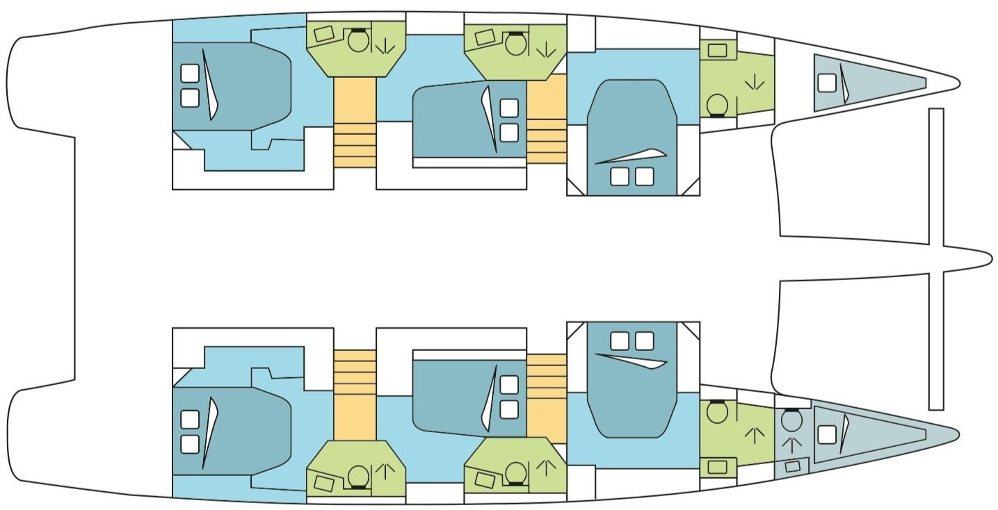| Kabinen: | 6+2 | Kojen: | 12+2+2 |