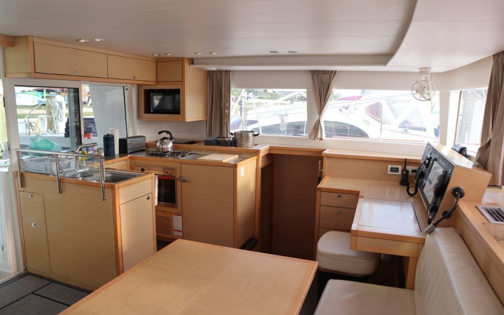 | Inside | Backofen, CD-Player, Gasherd, Gefrierschrank, Inverter 12V/220V, Klimaanlage (Landstrom), Kühlschrank, Mikrowelle, Moskitonetze, Salontisch absenkbar, Warmwasser |
