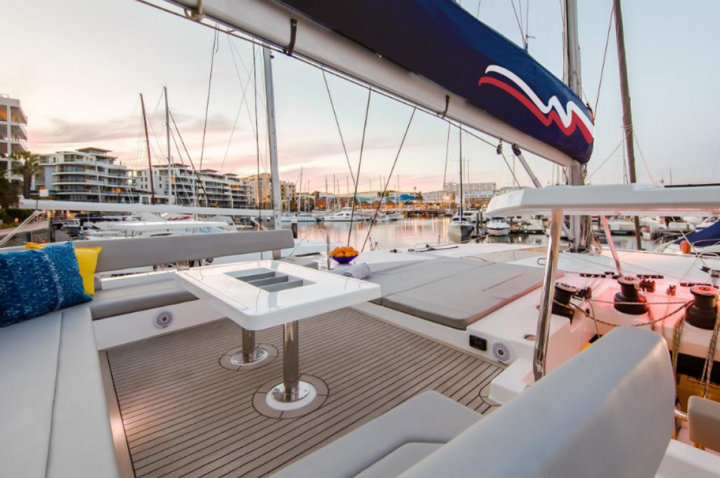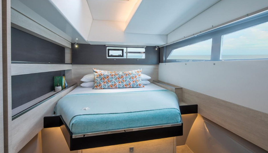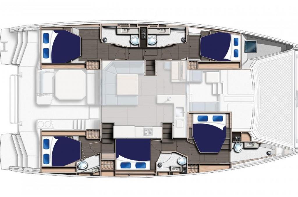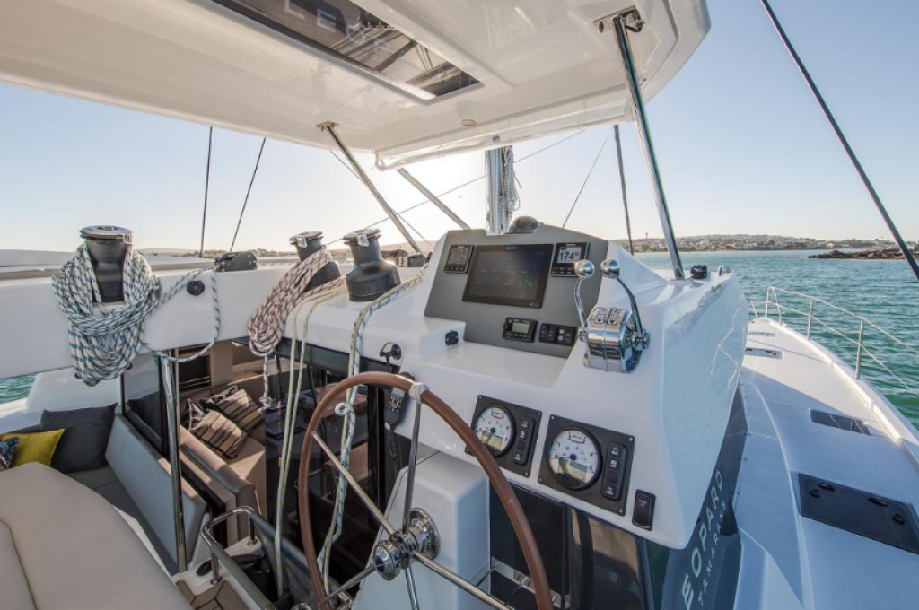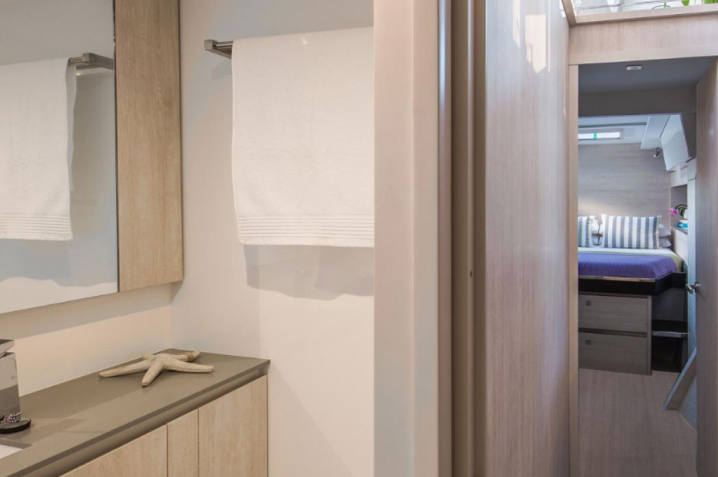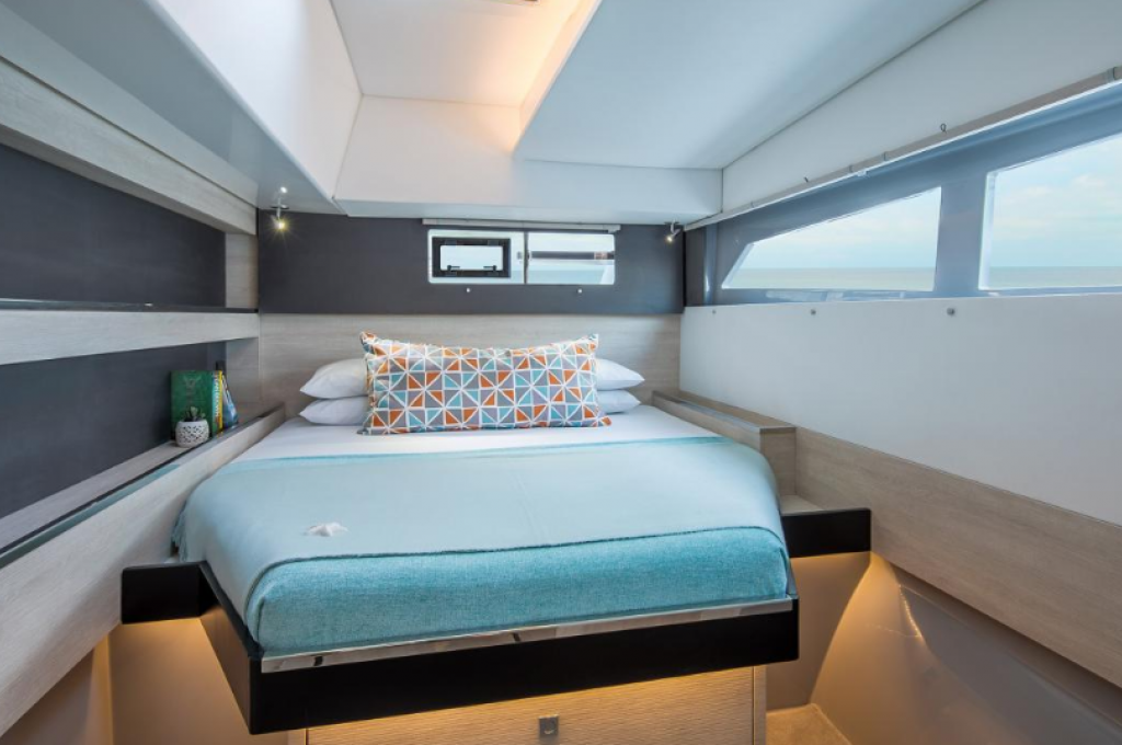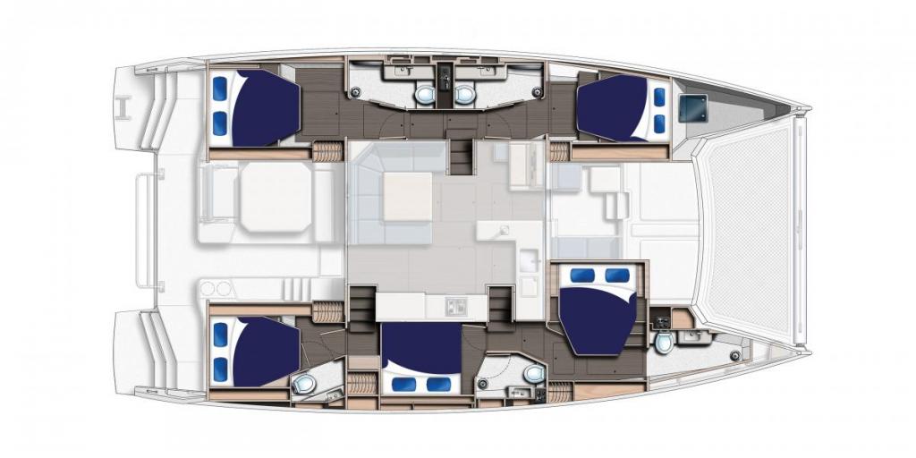 Inside 12V Steckdose, 2. Kühlschrank, Gasherd mit Backofen, Generator, Inverter 12V/220V, Klimaanlage (ohne Landstrombedarf), Kühlschrank, Ladegerät, Landstromkabel, LED-Innenleuchten, Mikrowelle, Radio mit CD und MP3, Salontisch absenkbar, TV, USB Steckdose, Ventilatoren in Kabinen, Warmwasser, Watermaker, Wechselrichter
