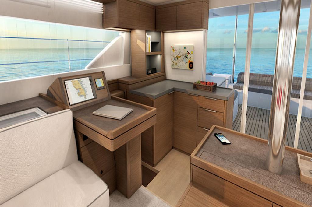 | Inside | Backofen, Eiswürfelmaschine, Gasherd, Gefrierschrank, Generator, Inverter 12V/220V, Klimaanlage (ohne Landstrombedarf), Kühlschrank, Pantryausstattung, Radio, Watermaker, WC (elektr.) |