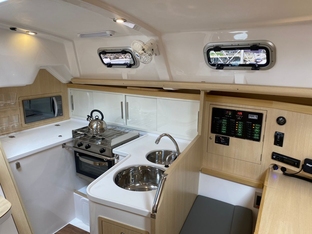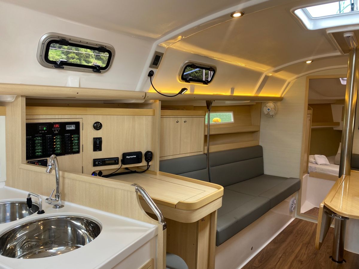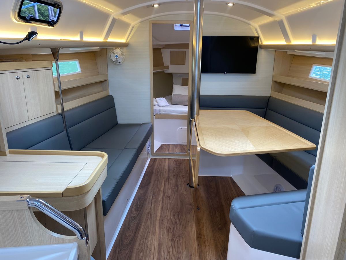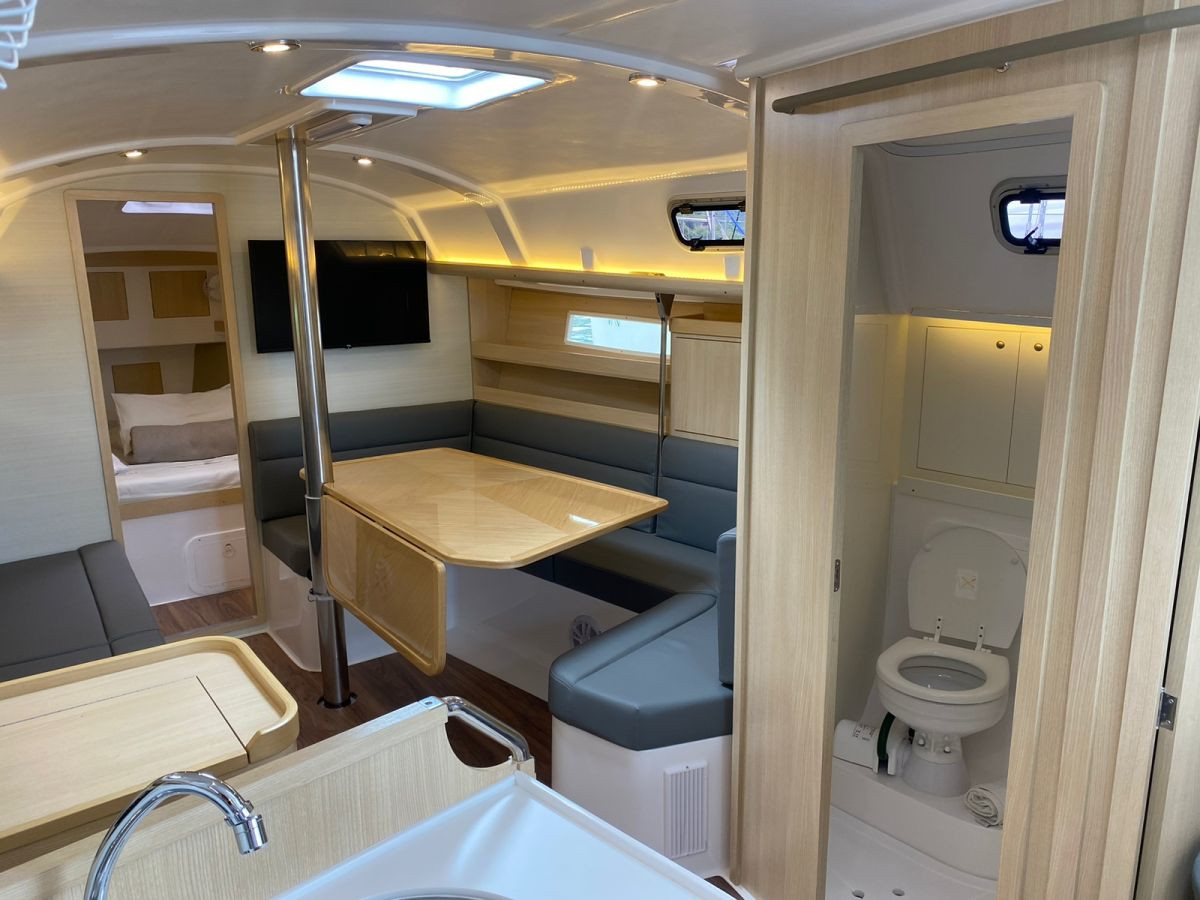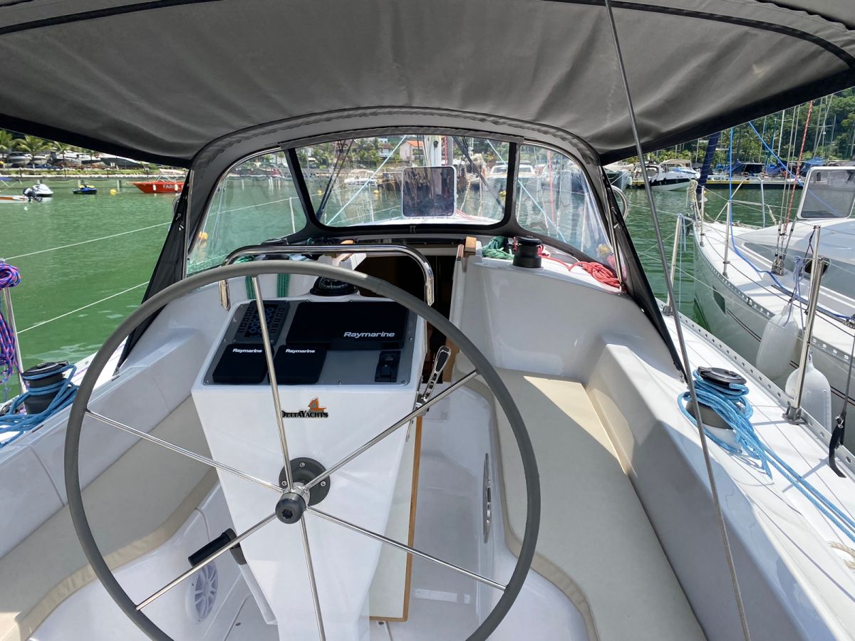 | Outside | 220 V-Landanschluss, Biminitop, Cockpitdusche, elektr. Ankerwinsch, elektr. Winsch, Grill, Solaranlage |